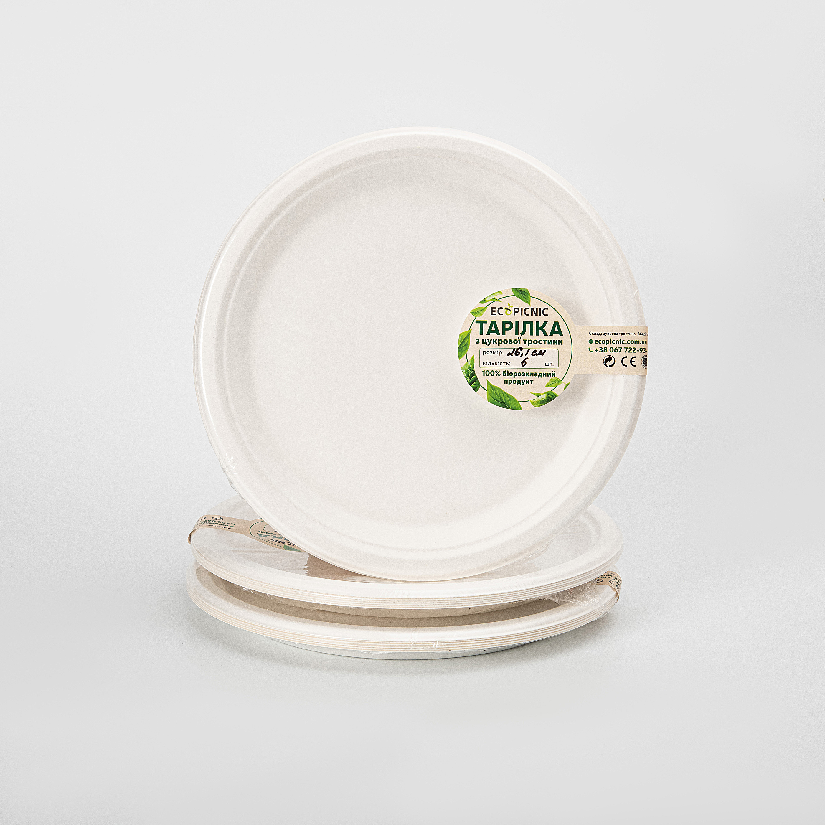 Набір тарілок з цукрової тростини, круглих 26.1см - 6 шт/уп