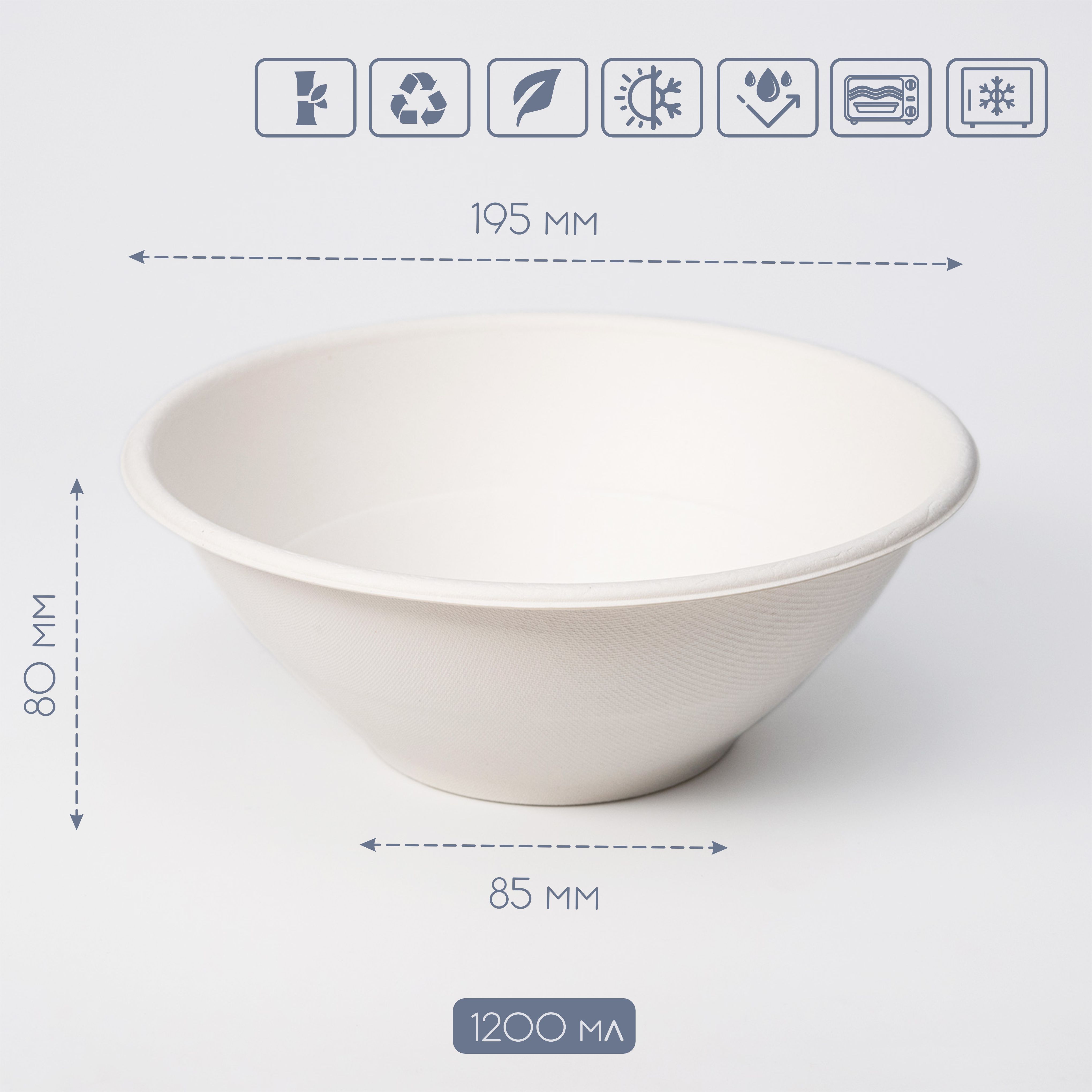 Салатник круглий з цукрової тростини 1200 мл 50шт/уп ( 500шт/ящ)