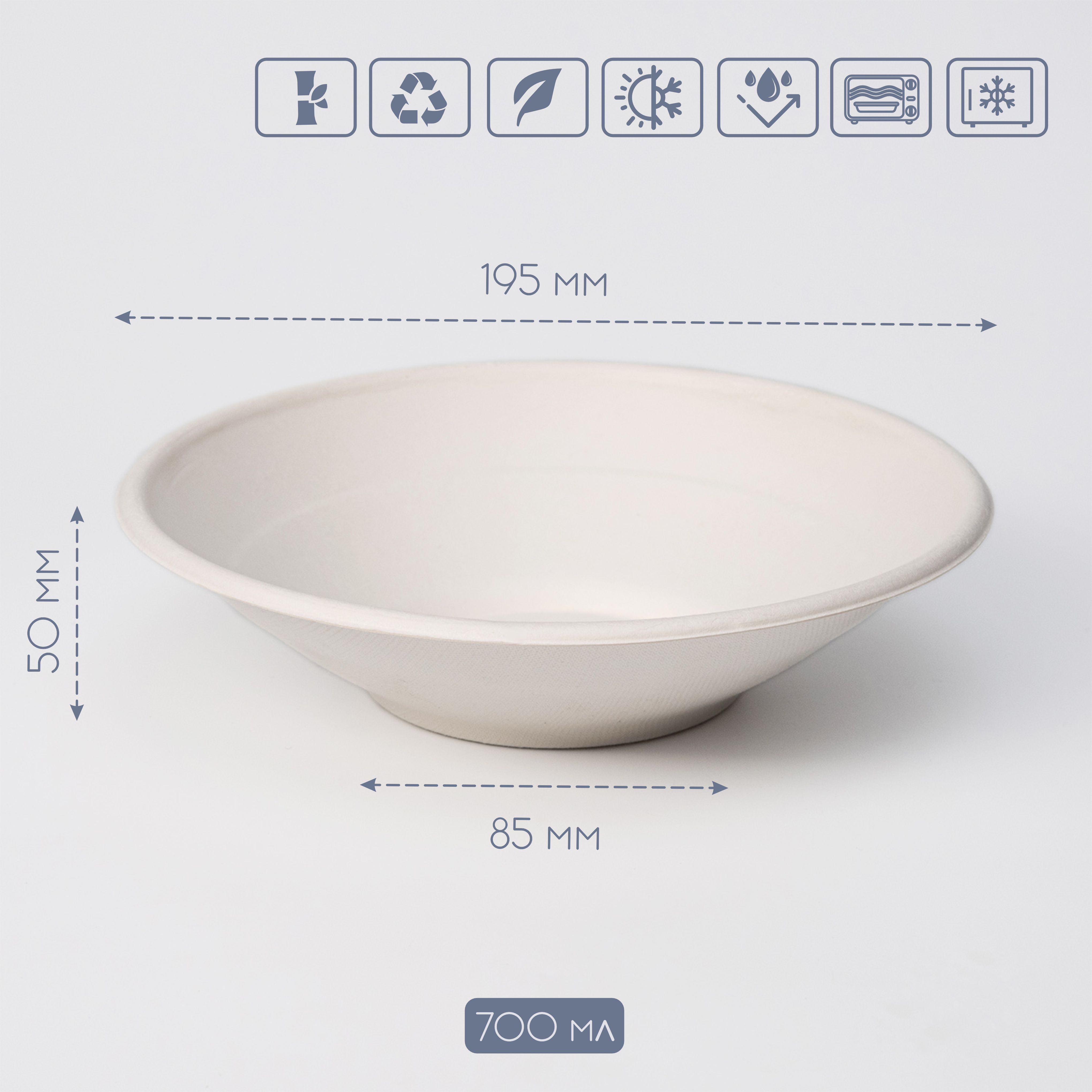 Салатник круглий з цукрової тростини 700 мл — Екологічний стандарт для HoReCa