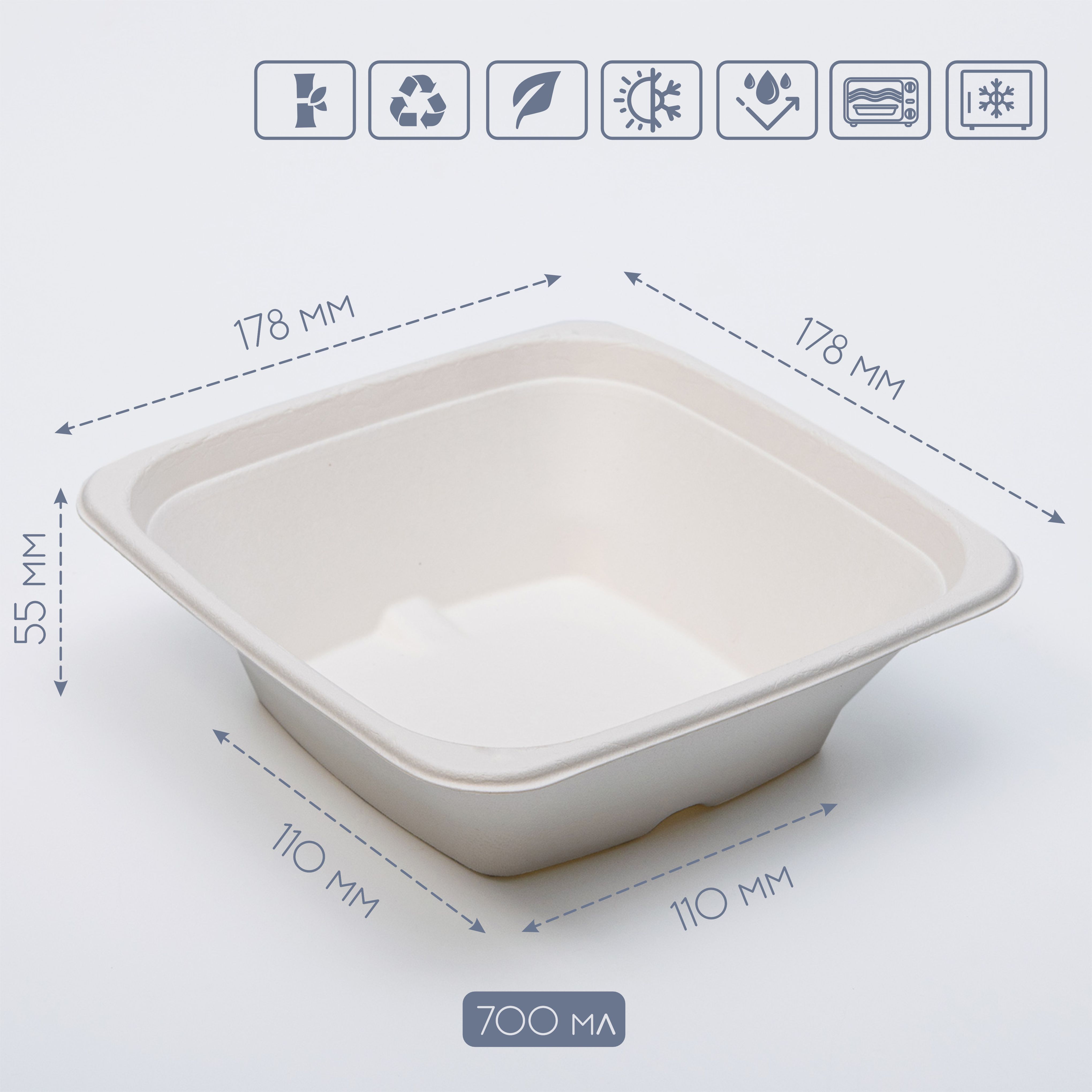 Салатник квадратний з цукрової тростини 700 мл 50 шт/уп (400шт/ящ)