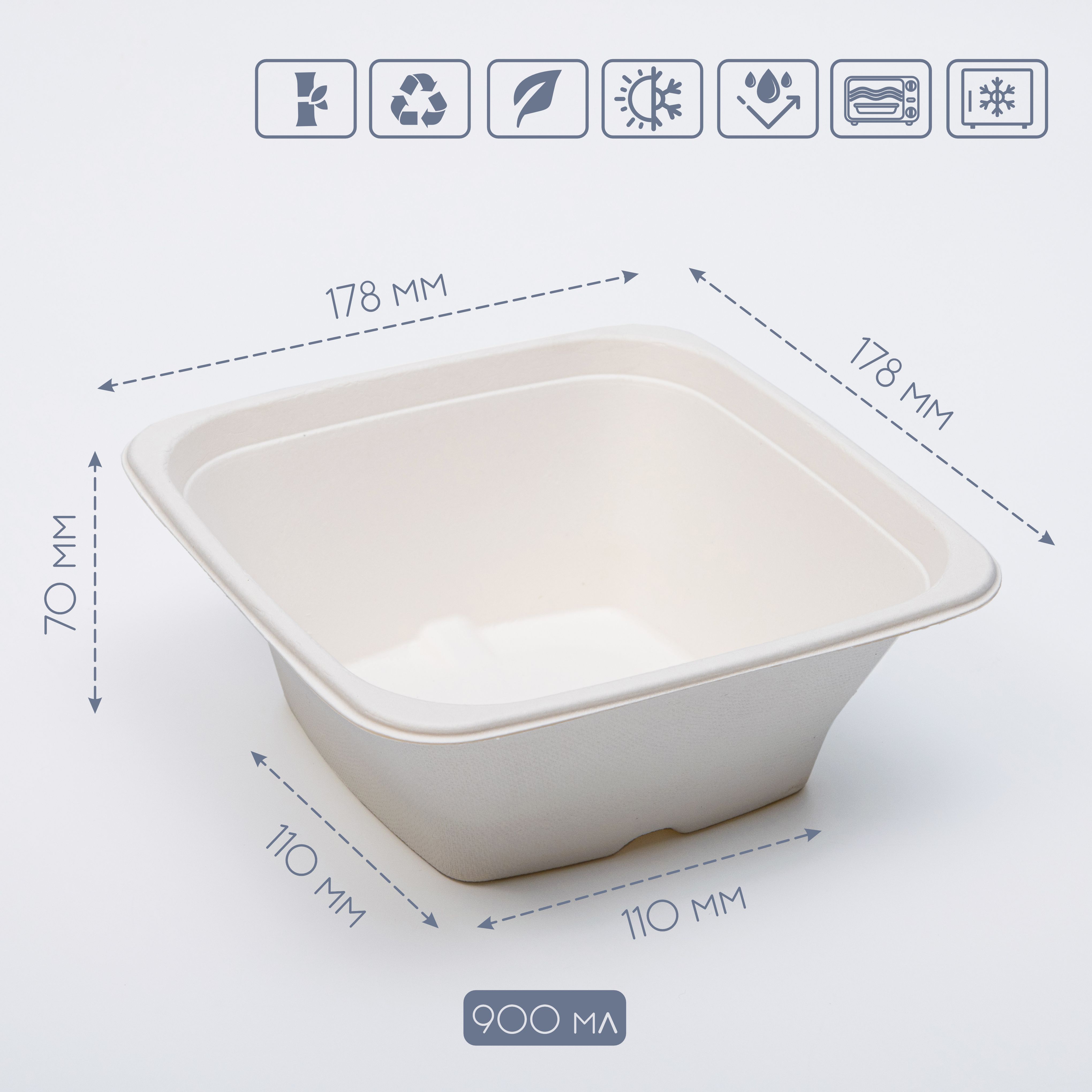 Салатник квадратний з цукрової тростини 900 мл — Професійне еко-рішення для HoReCa