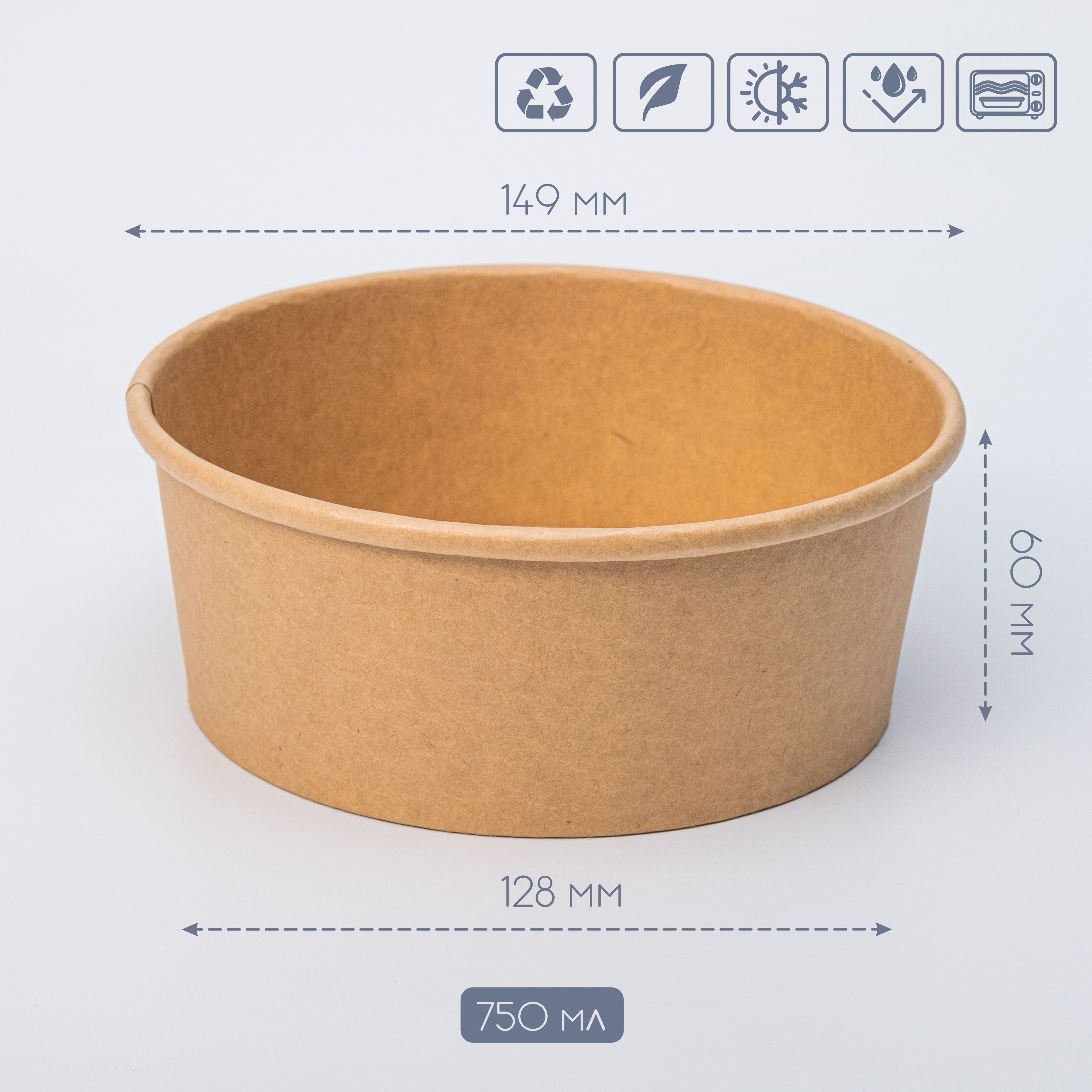 Салатниця крафтова 750 мл – сучасний та екологічний варіант одноразового посуду, що підходить для салатів, гарнірів, пасти, десертів та інших готових страв.