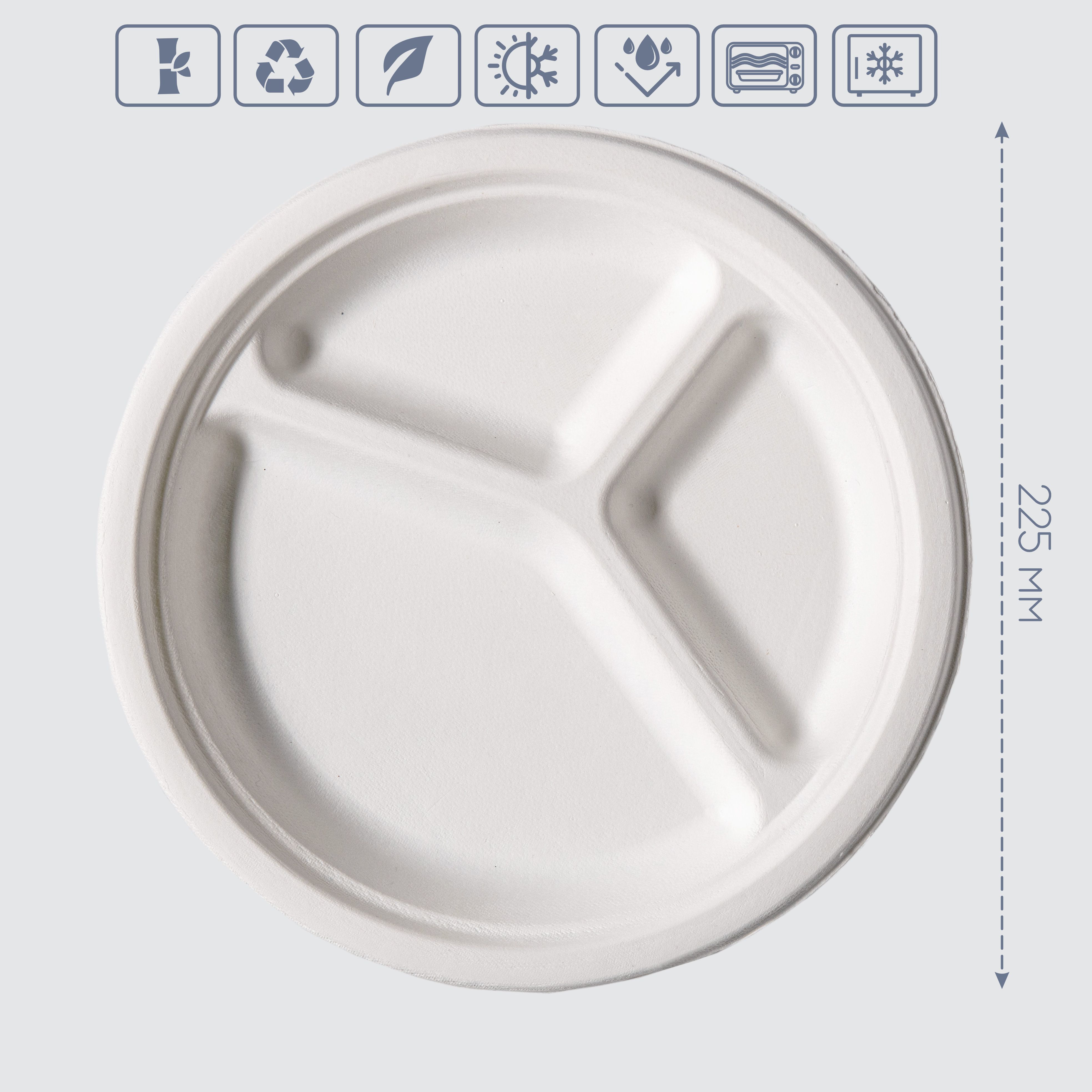 Тарілка з цукрової тростини на 3 поділки (225 мм): Екологічність та Міцність без компромісів