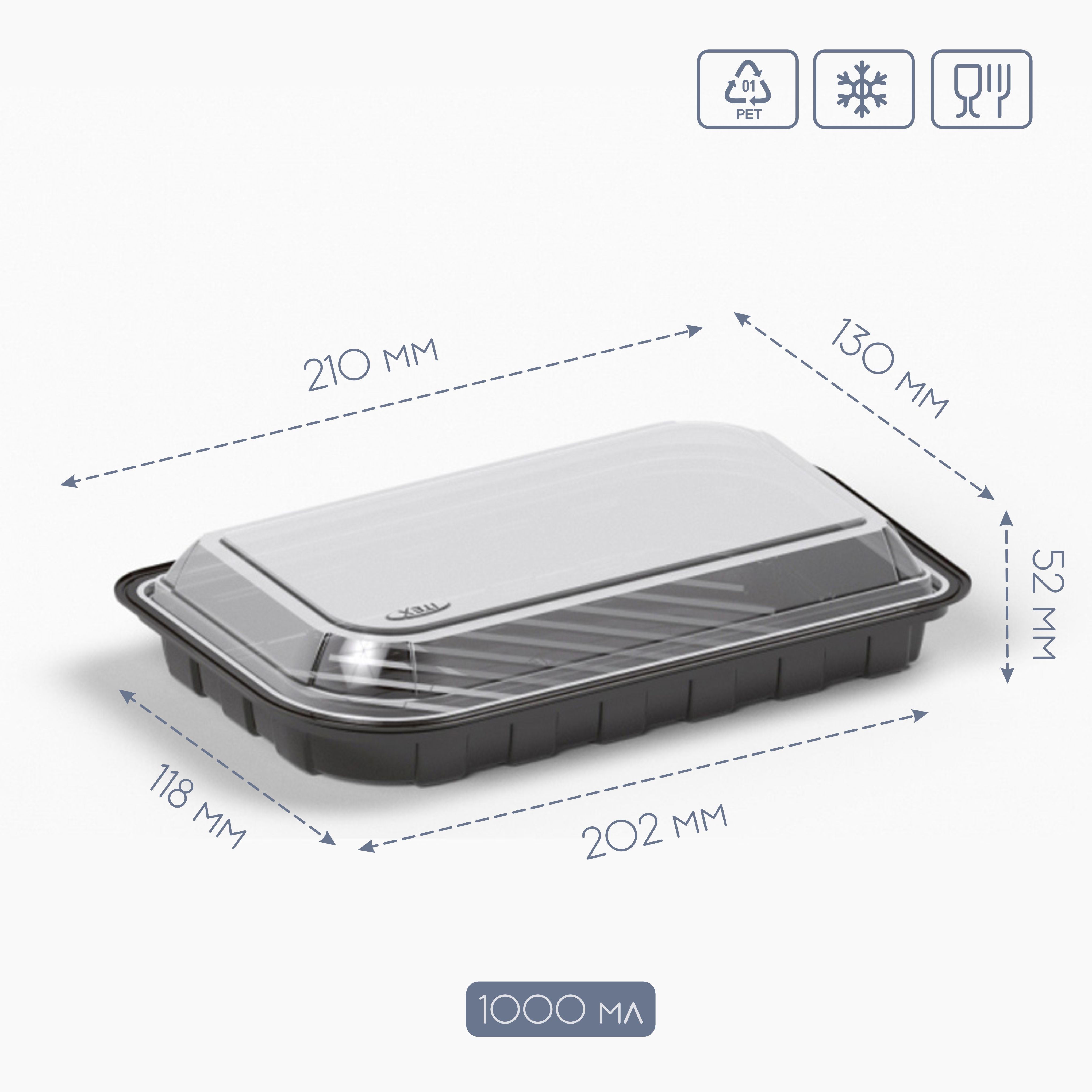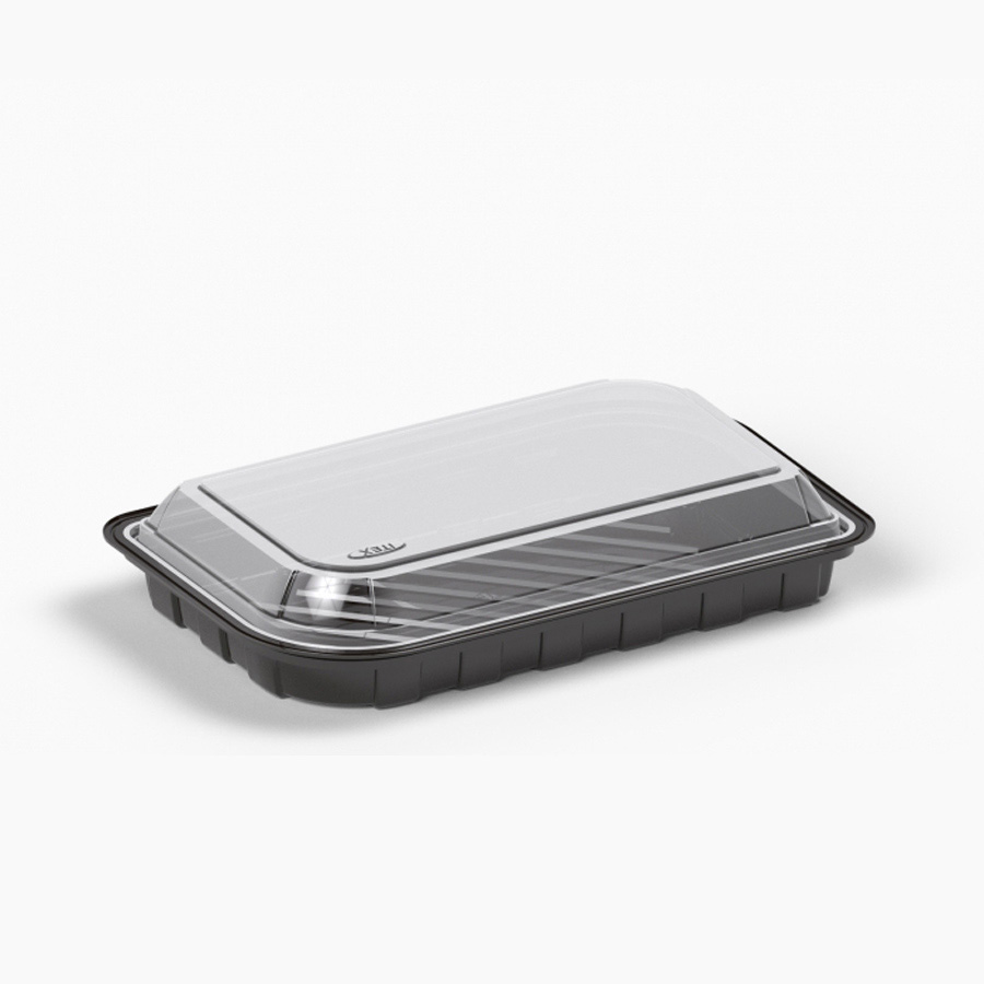 Харчовий пластик: Контейнер виготовлений з безпечного харчового пластику (часто це PET або OPS), який не виділяє шкідливих речовин та є інертним до продуктів. Цей матеріал також забезпечує кришталеву прозорість, дозволяючи клієнту візуально оцінити страву ще до відкриття.