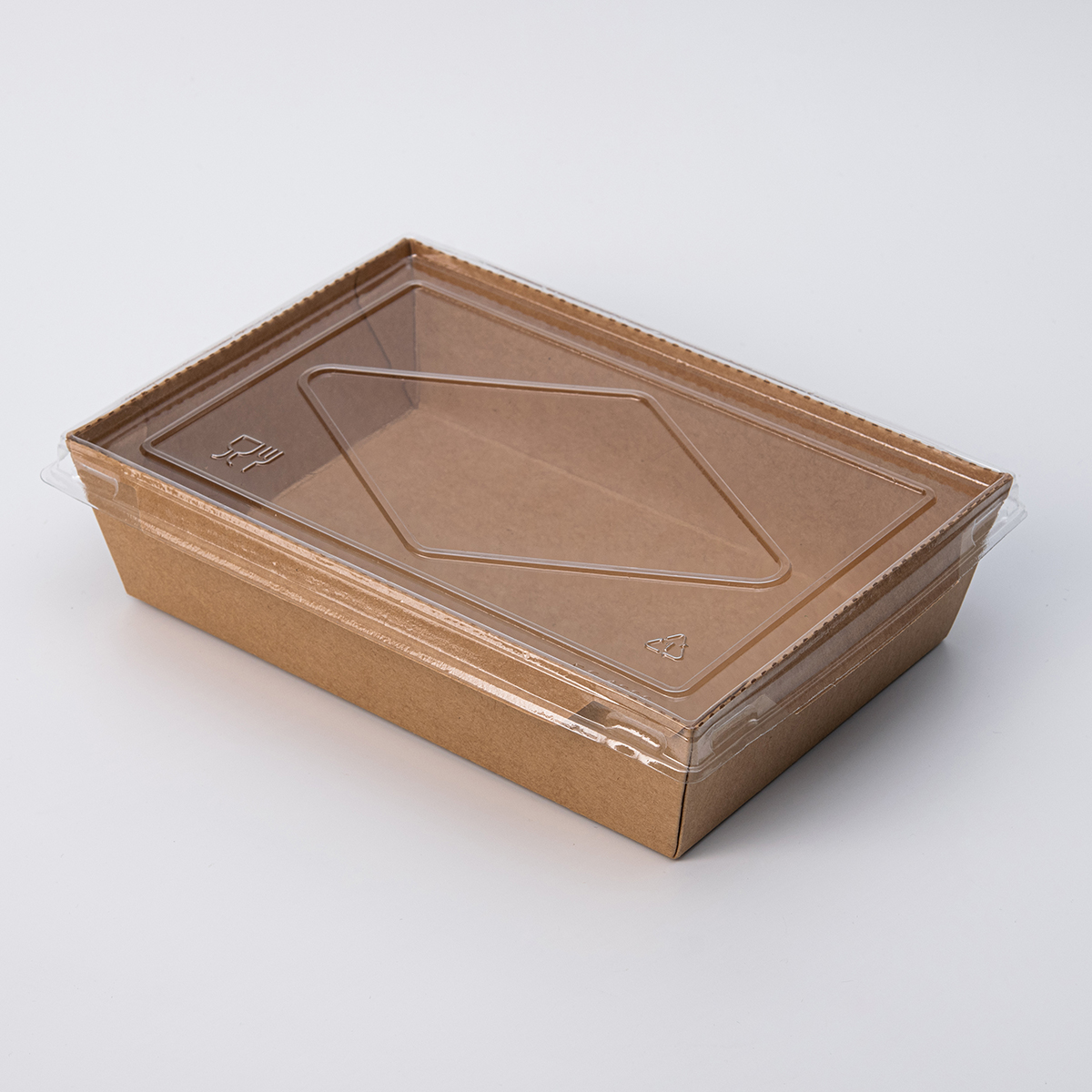 Висока якість матеріалу: Виготовлений зі 100% целюлозного крафт-картону, він є жиро- та вологостійким. Це гарантує, що упаковка не розмокне і збереже форму навіть при тривалому транспортуванні гарячих страв.