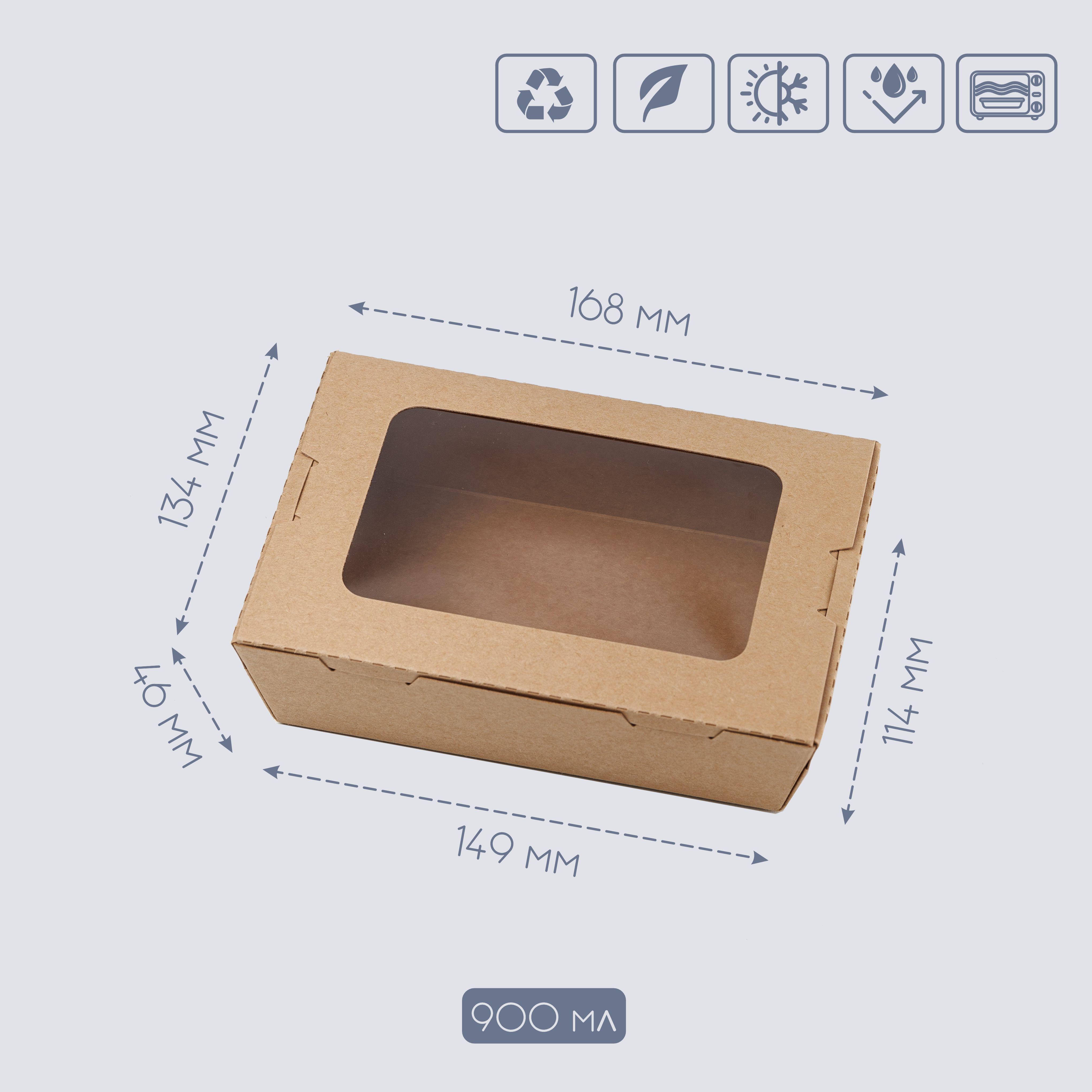 Крафтовий контейнер з вікном 900 мл — практична та екологічна упаковка для їжі, яка поєднує функціональність та презентабельність.