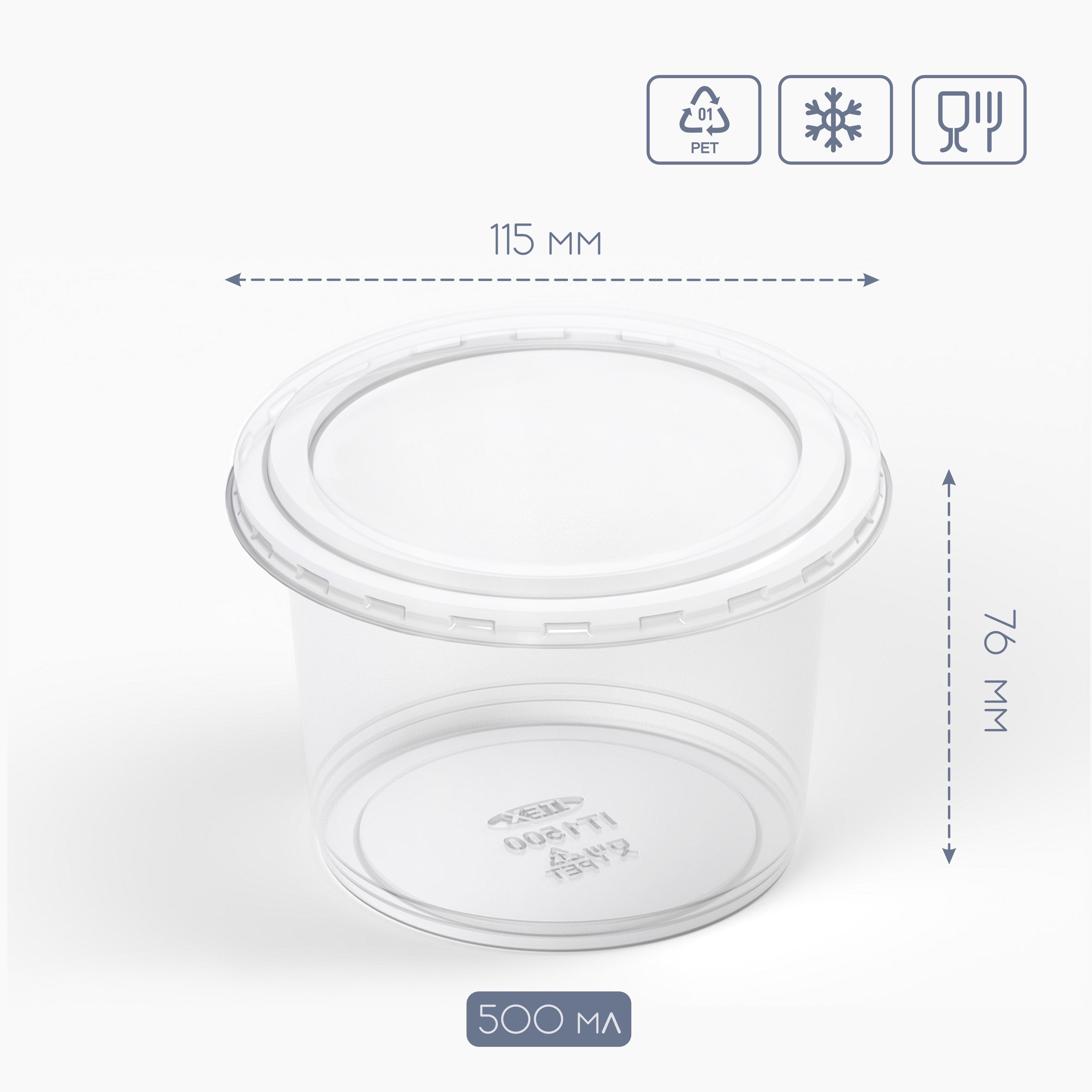 Контейнер пластиковий круглий з кришкою ПЕТ 115*76 50шт/уп ІТ1500 500мл (900шт/ящ)
