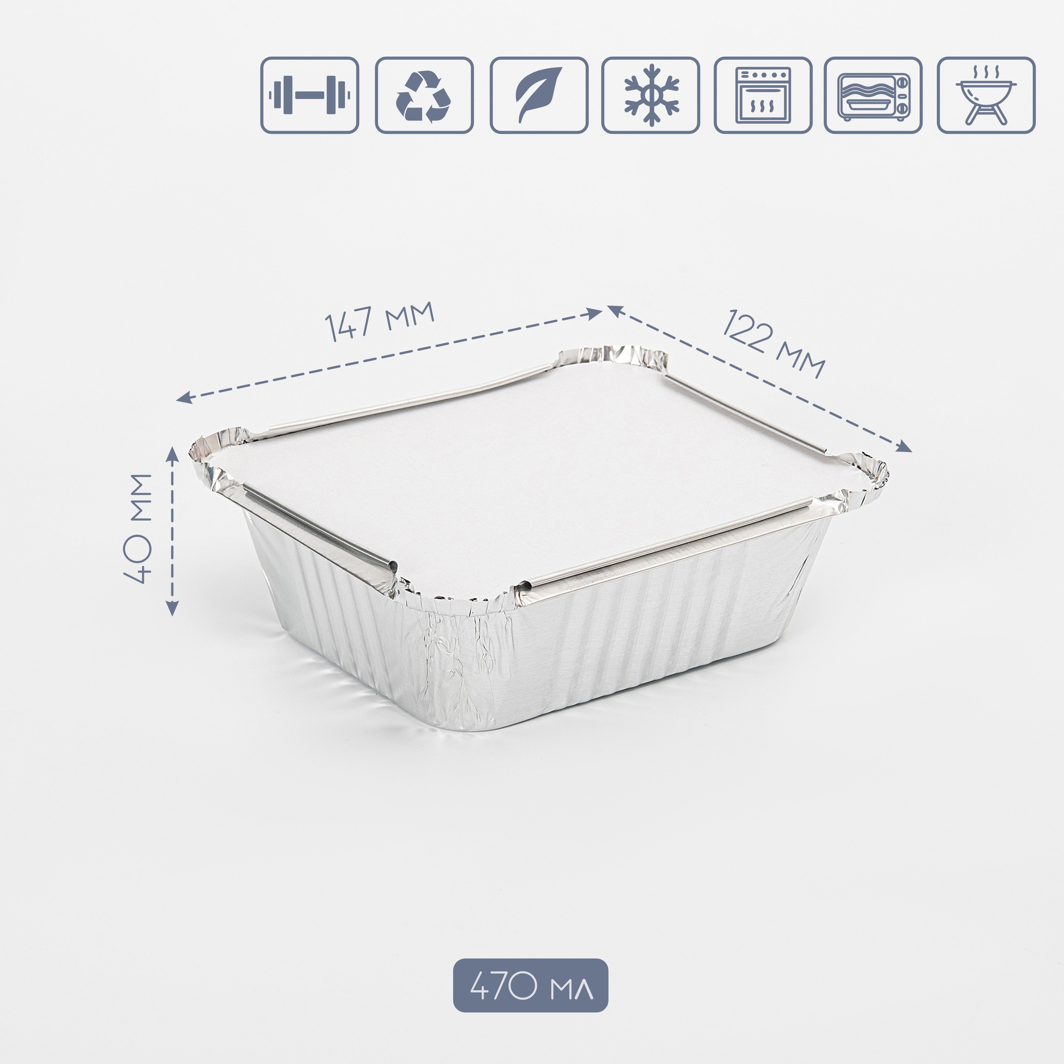 Контейнер з алюмінієвої фольги з кришкою (R 46) 470мл 147х122х40мм