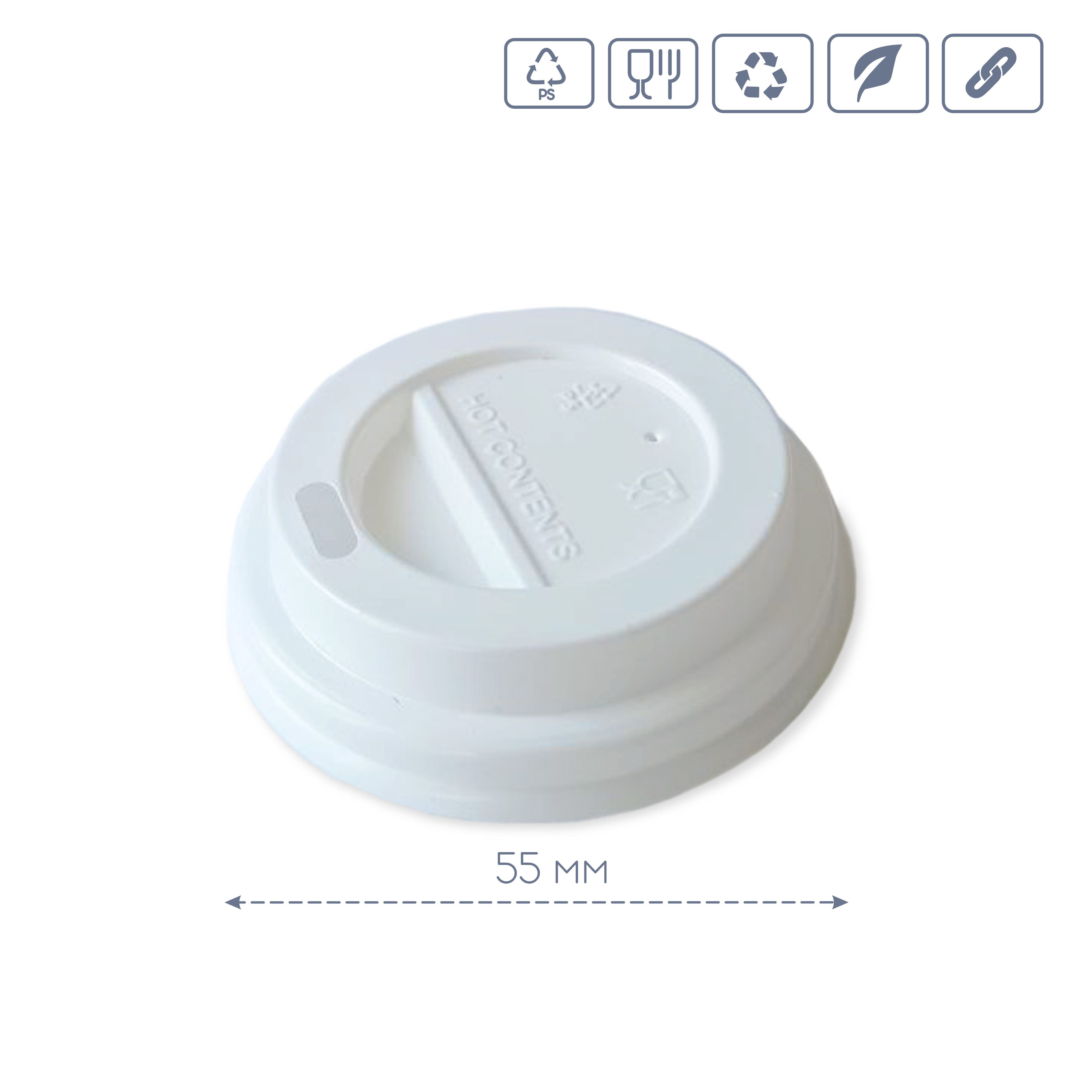 Універсальність: Ця кришка ідеально підходить для паперових стаканів з діаметром 55 мм. Вона універсальна для багатьох об'ємів, що робить її незамінним аксесуаром для кав'ярень.