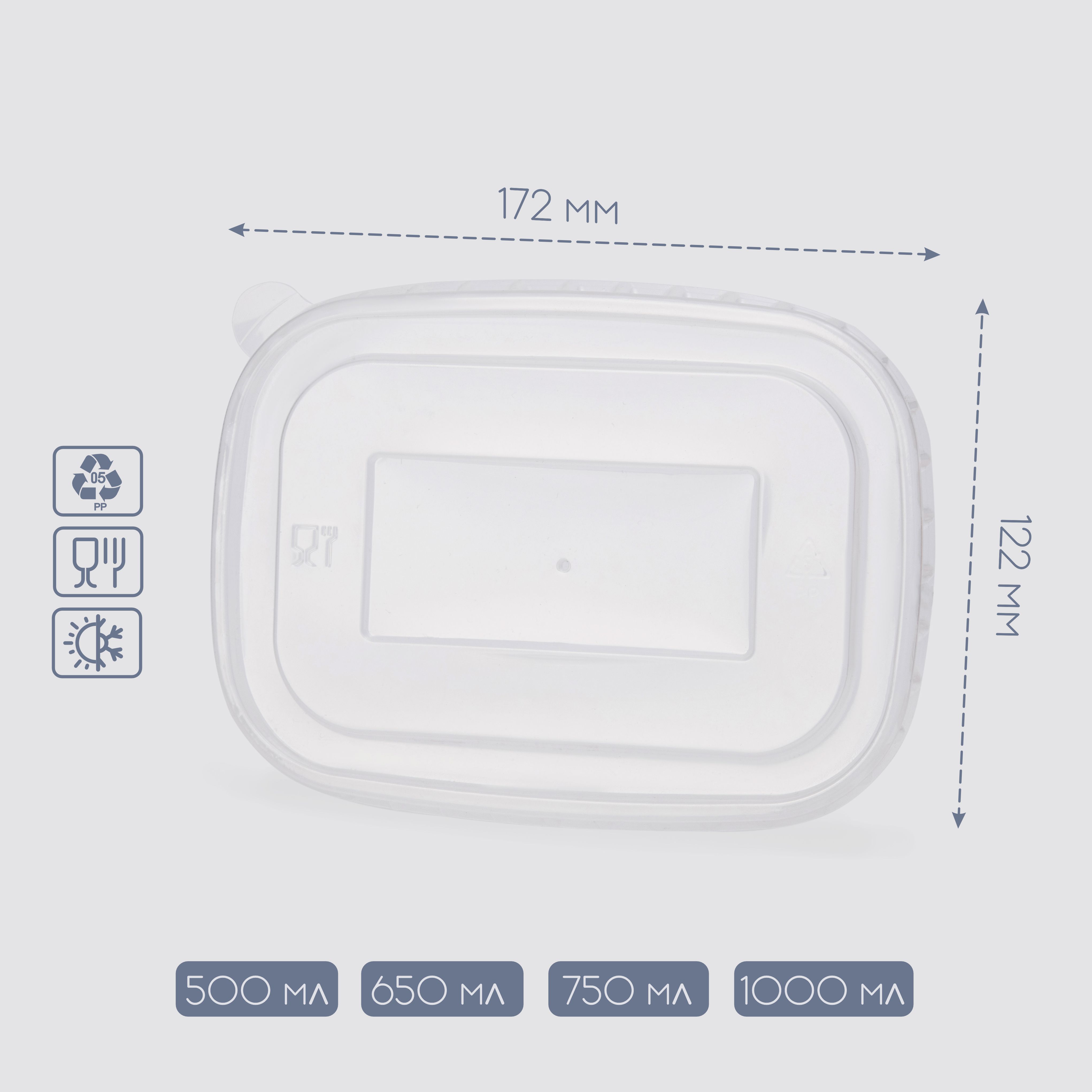 Кришка РР для прямокутної салатниці 500/650/750/1000мл (50шт.уп./ 300шт/ящ)