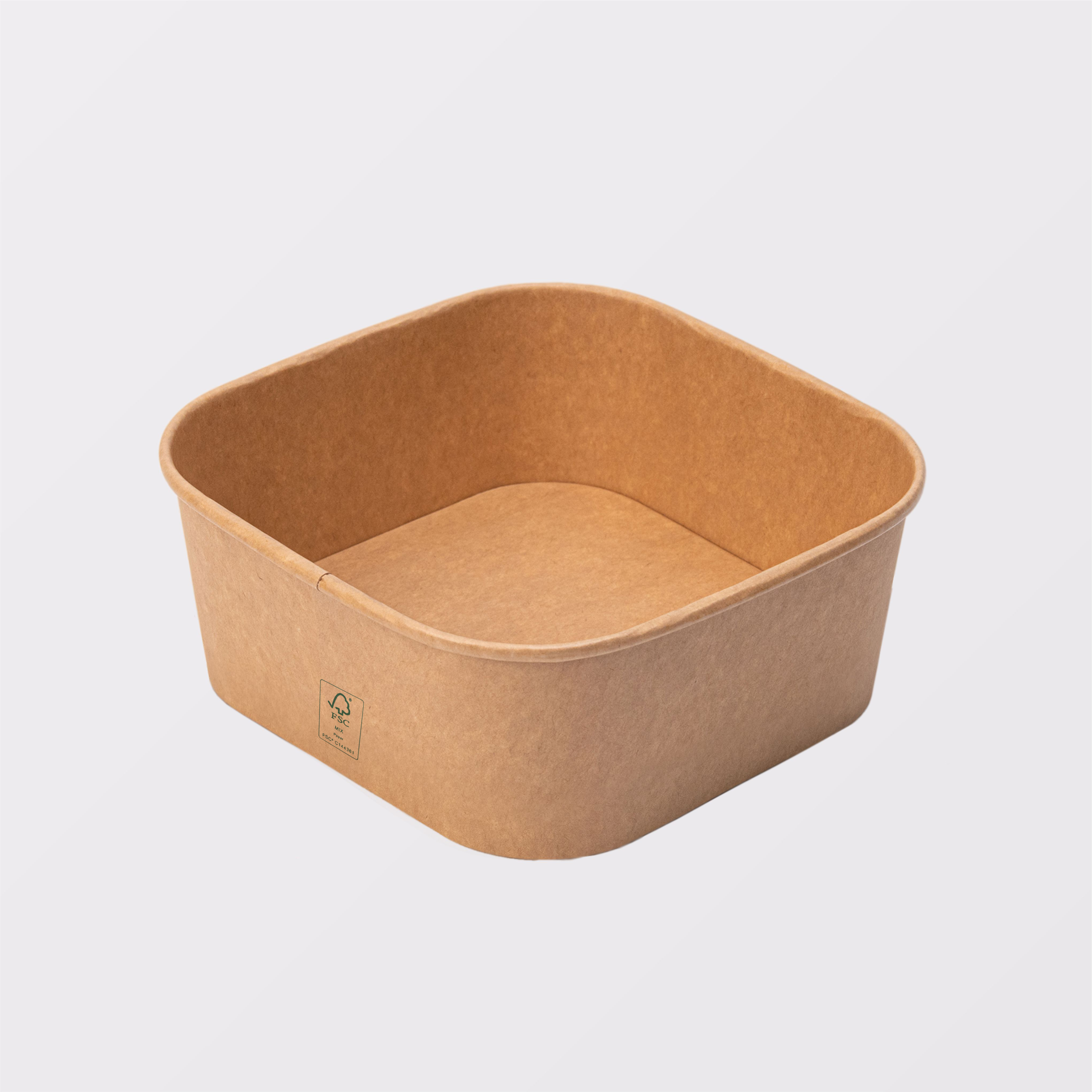 Квадратний салатник крафт 170×170 FSC 1200 мл — це універсальна та стильна упаковка для подачі, транспортування й зберігання різних страв. Виготовлений із щільного, екологічно чистого крафт-картону, що має FSC-сертифікацію, підтверджуючи його безпечність і відповідальне походження матеріалів.