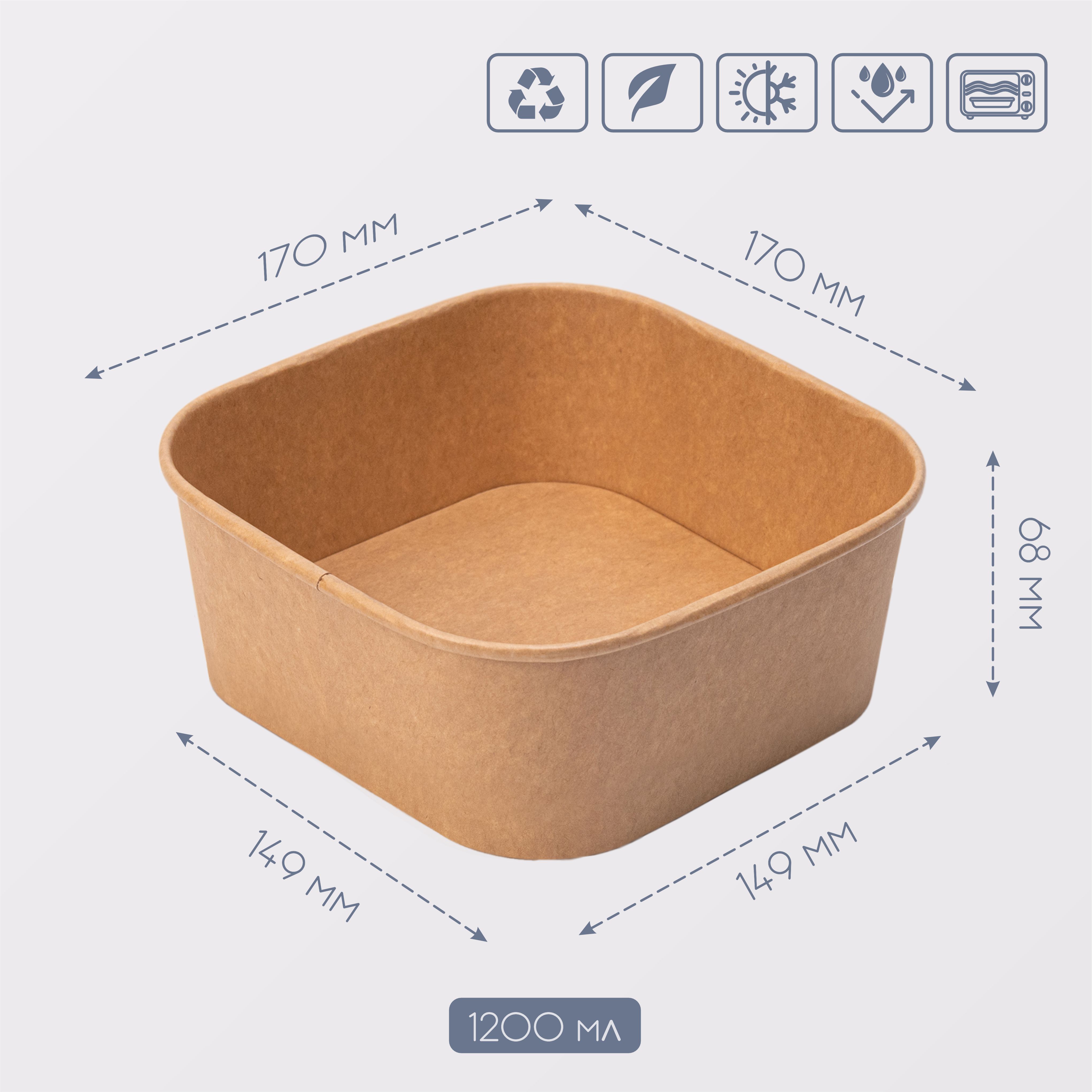 Квадратний салатник крафт 170*170 FSC 1200мл 50шт/уп (300шт/ящ)