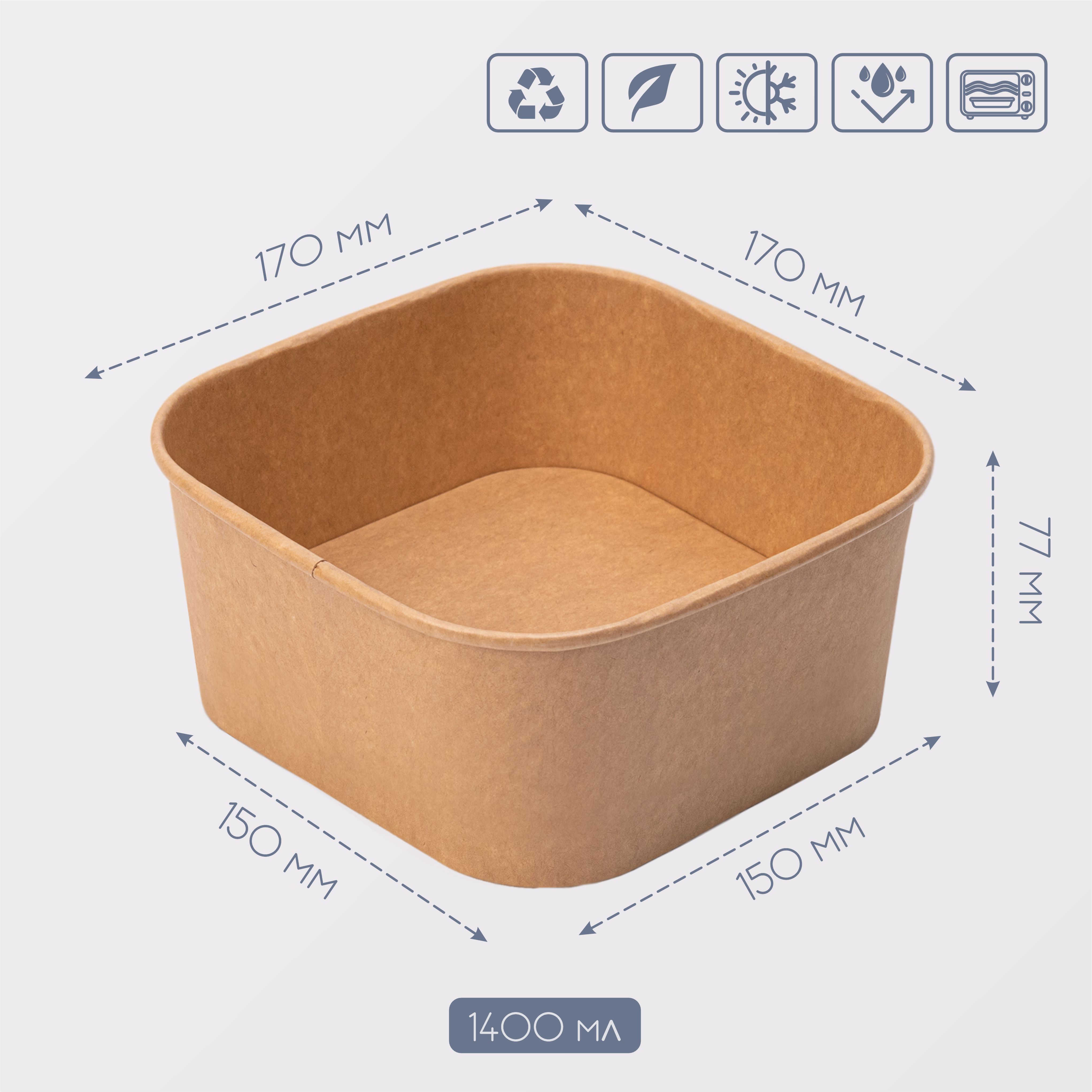 Квадратний салатник крафт 170*170 FSC 1400мл 50шт/уп (300шт/ящ)