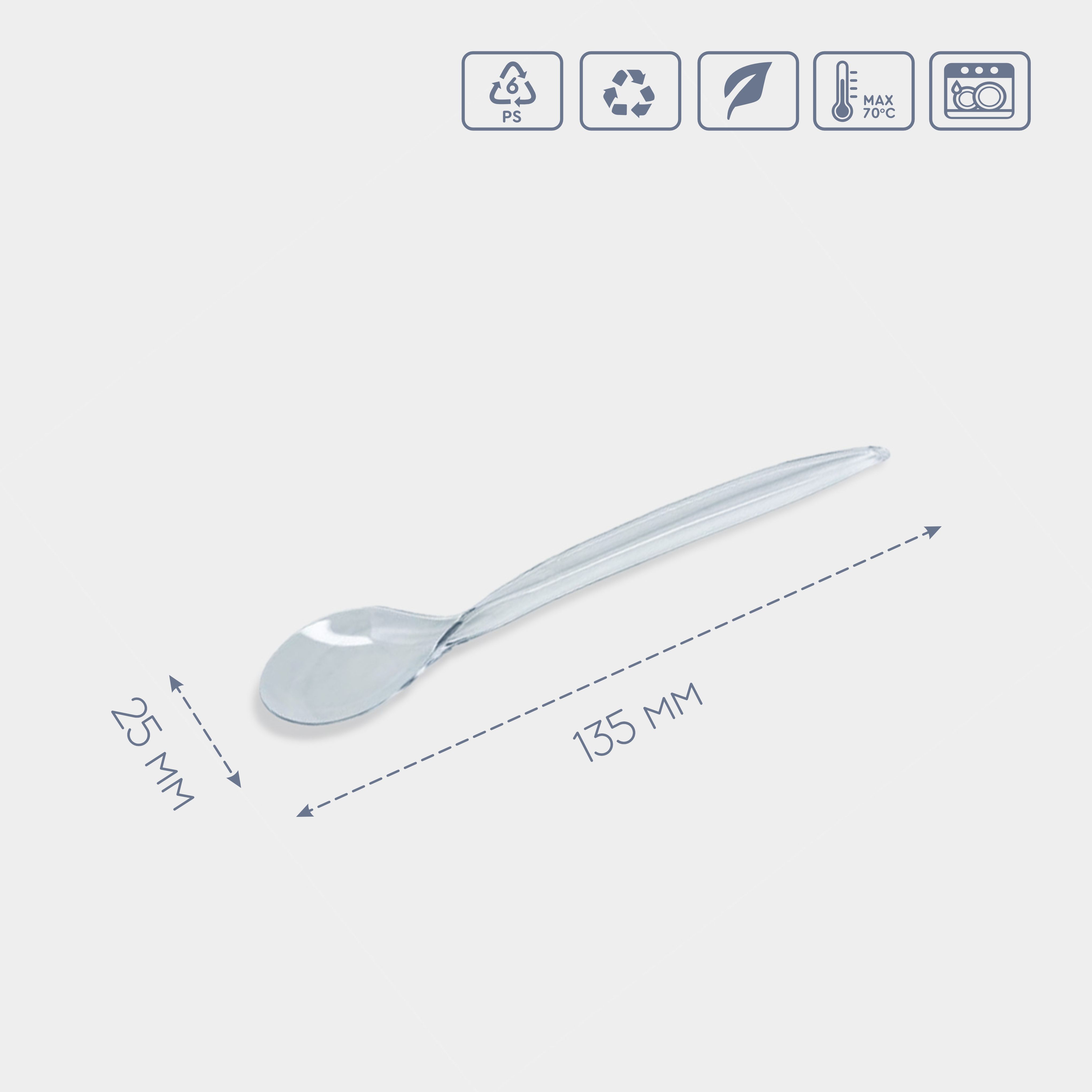 Кришталева прозорість: Прозорий матеріал імітує скляний посуд, надаючи приладу витонченого та елегантного вигляду. Ложечка чудово доповнює будь-який десерт чи подачу.