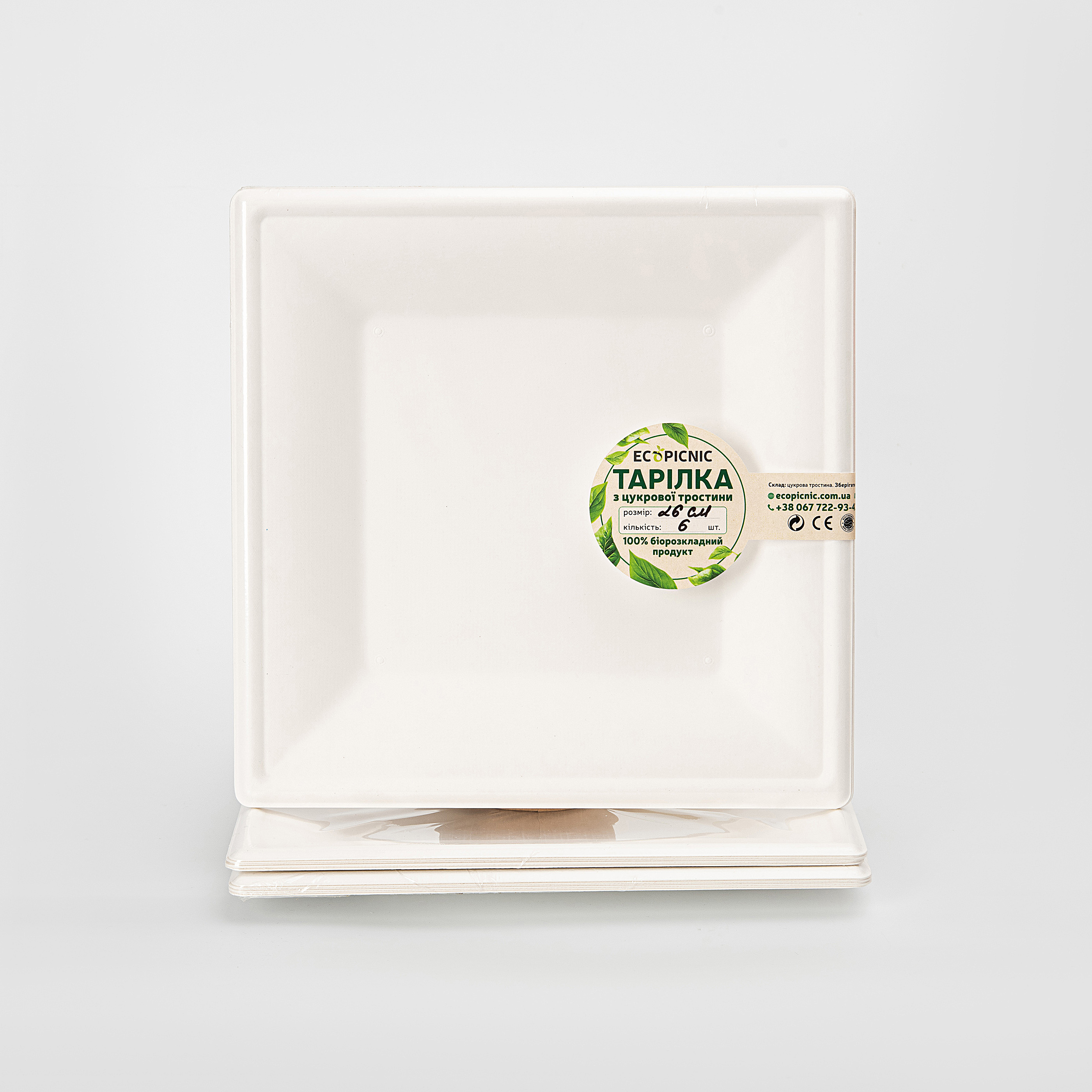 Набір тарілок з цукрової тростини, квадратних 26 см - 6шт/уп