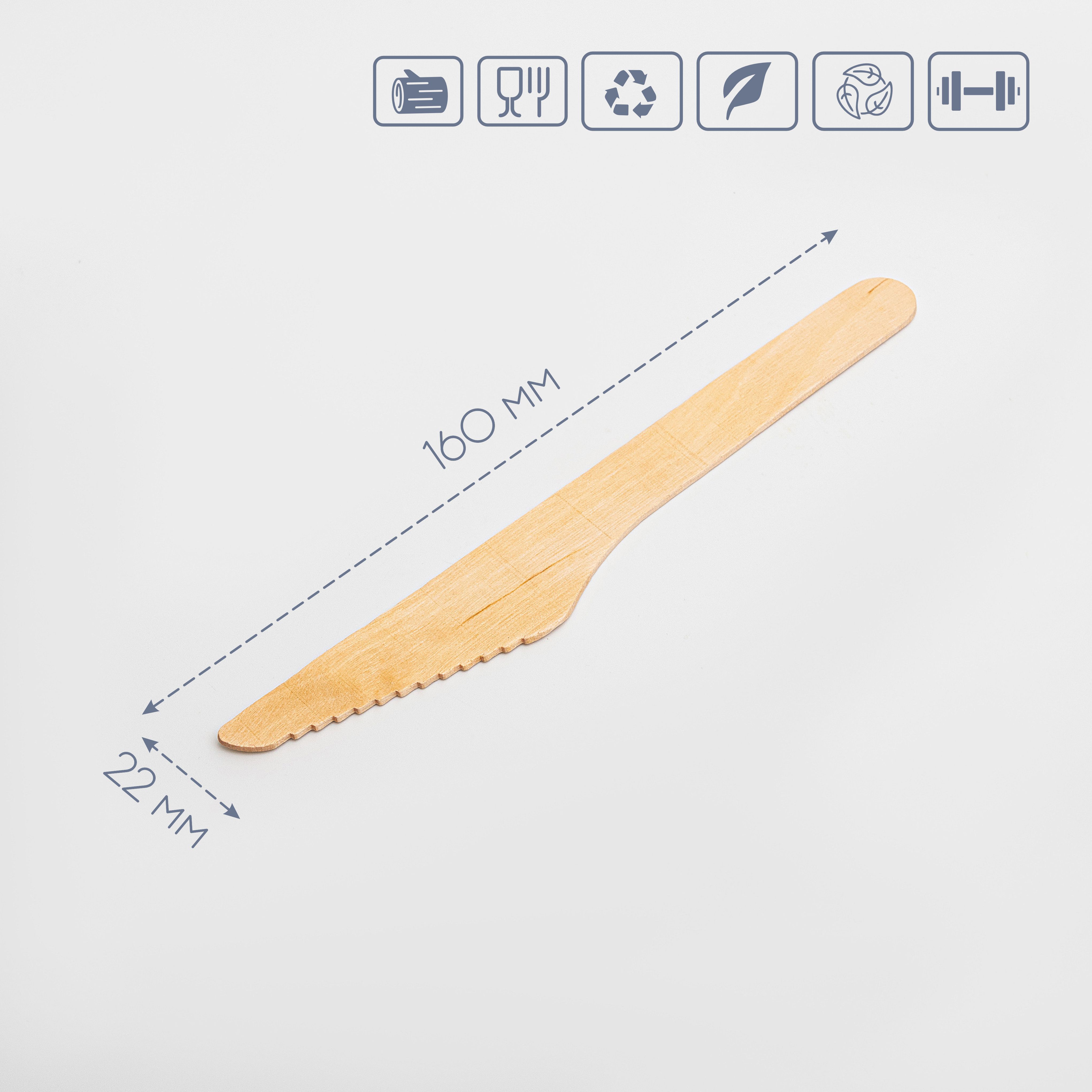 Дерев’яний ніж 160 мм — це одноразовий екологічний прилад, який поєднує високу якість виготовлення та практичність. Вироблений з натуральної деревини, він є безпечним для контакту з їжею та не містить пластику, клеїв чи хімічних покриттів.