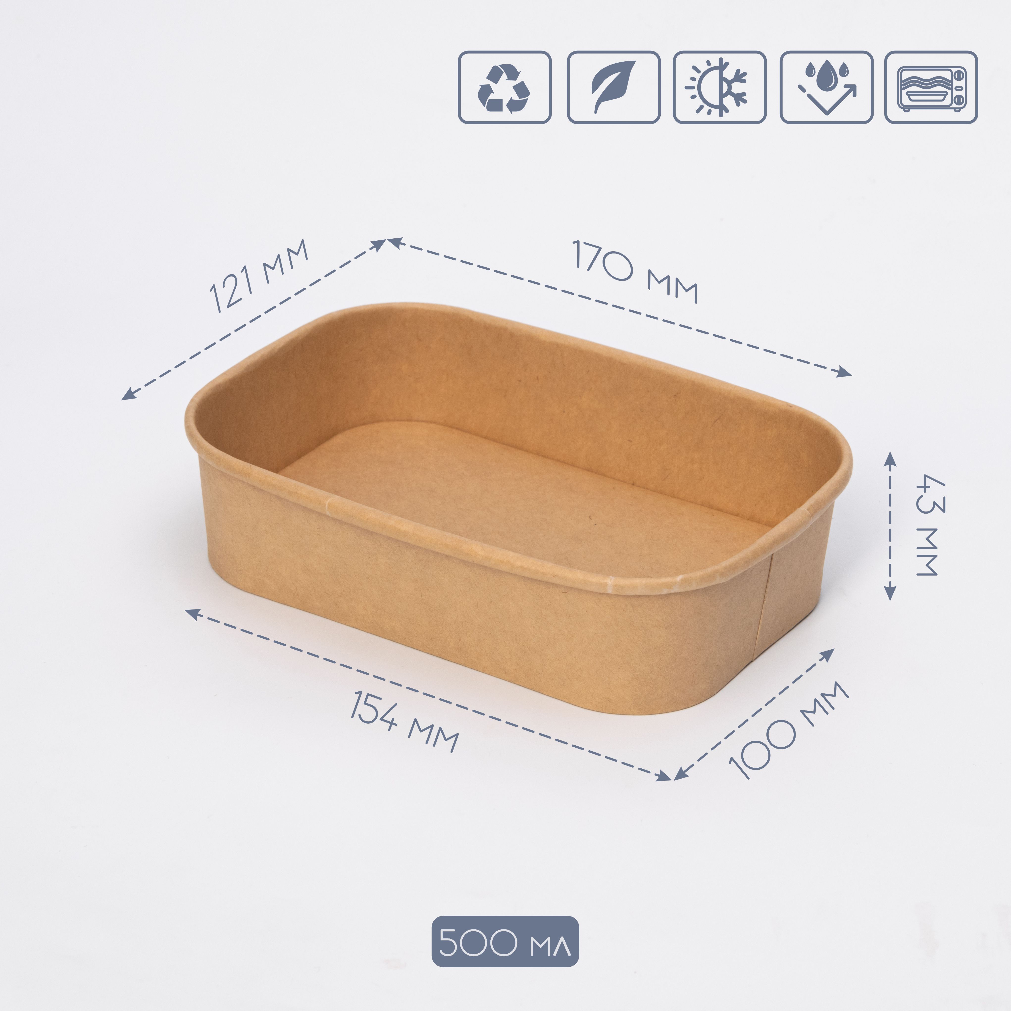 Прямокутний салатник 500 мл – універсальна одноразова упаковка, що чудово підходить для подачі салатів, холодних і гарячих страв, гарнірів, десертів та напівфабрикатів.
