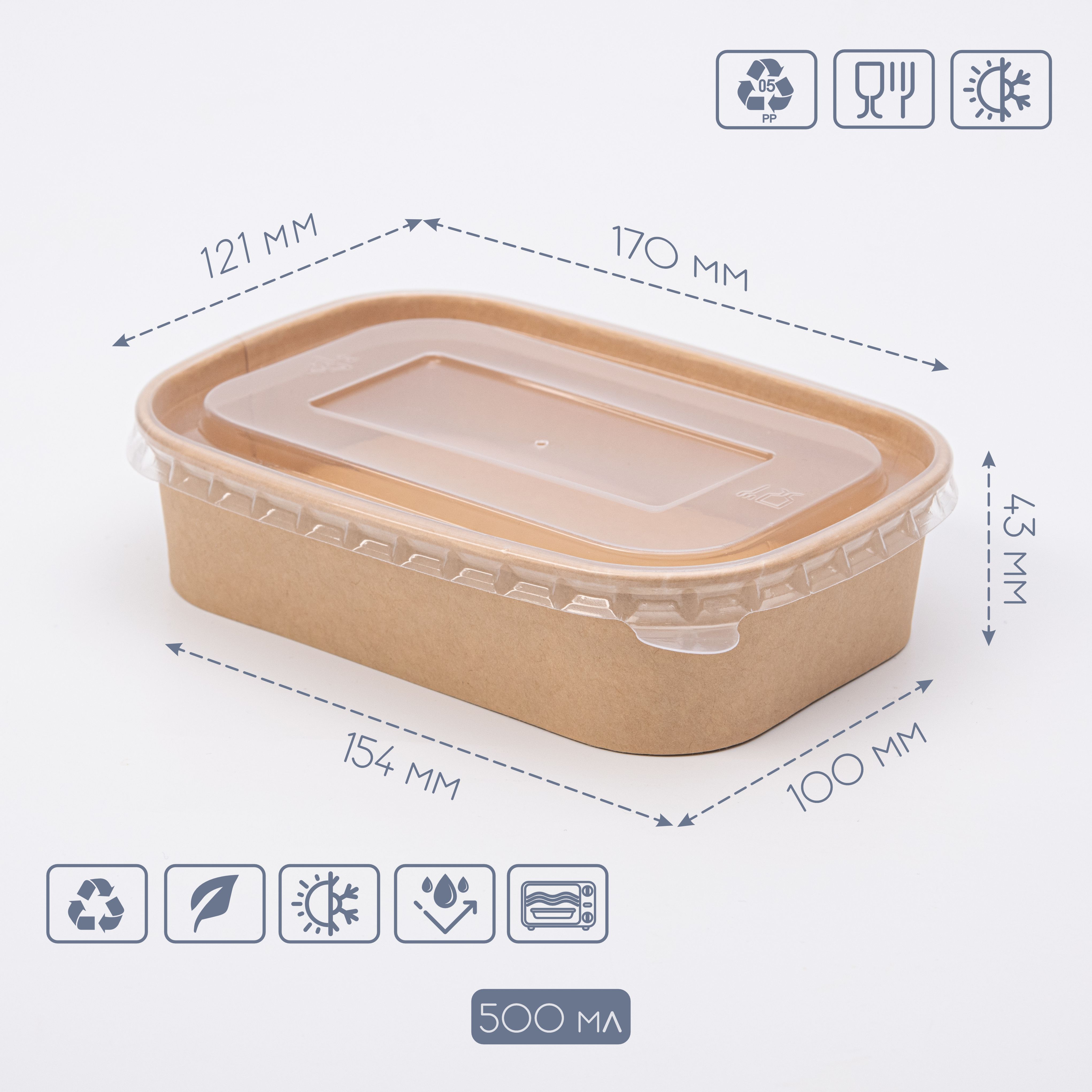 Прямокутна салатниця з кришкою РР 500 мл – практична тара для доставки та пакування їжі.