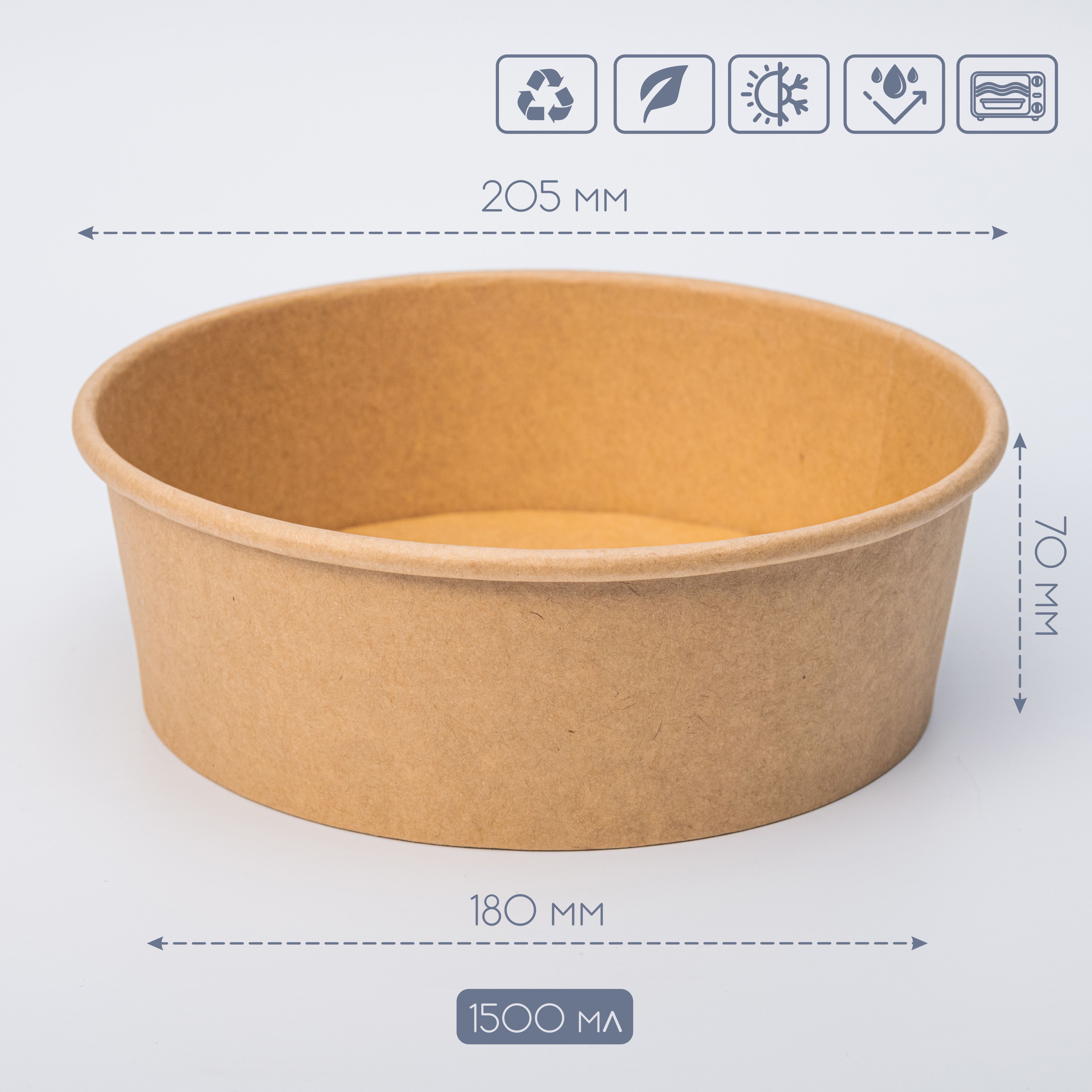 Крафтовий круглий контейнер, на 100% складається з якісного целюлозного картону.