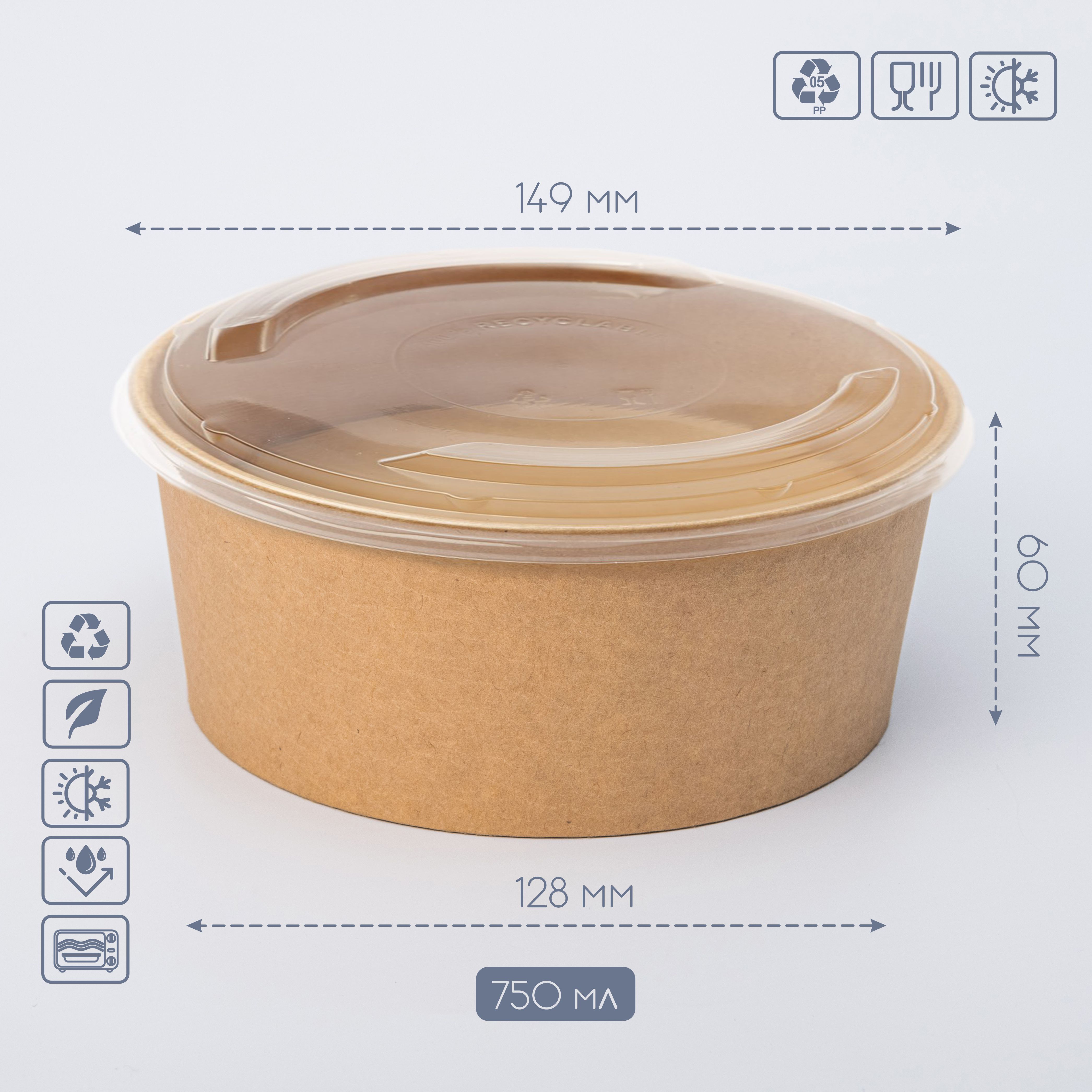 Сфера застосування: Салатниця 750 мл знайде своє застосування у фаст-фуді, кафе, ресторанах, службах доставки та для вітринної викладки. Вона також підходить для упаковки їжі на винос та проведення пікніків.