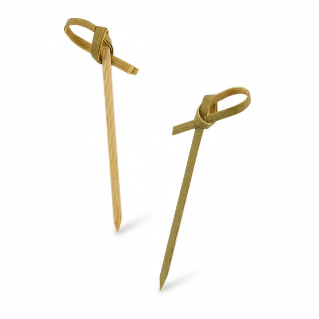 Шпажка бамбукова «Вузлик» 6 см — компактне та естетичне рішення для сервірування міні-закусок, канапе та finger food. Завдяки декоративному вузлику шпажка додає подачі вишуканості й допомагає створити преміальний вигляд страв.
