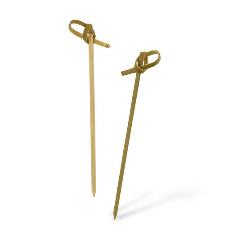 пажка бамбукова «Вузлик» 9 см — компактне та естетичне рішення для сервірування міні-закусок, канапе та finger food. Завдяки декоративному вузлику шпажка додає подачі вишуканості й допомагає створити преміальний вигляд страв.