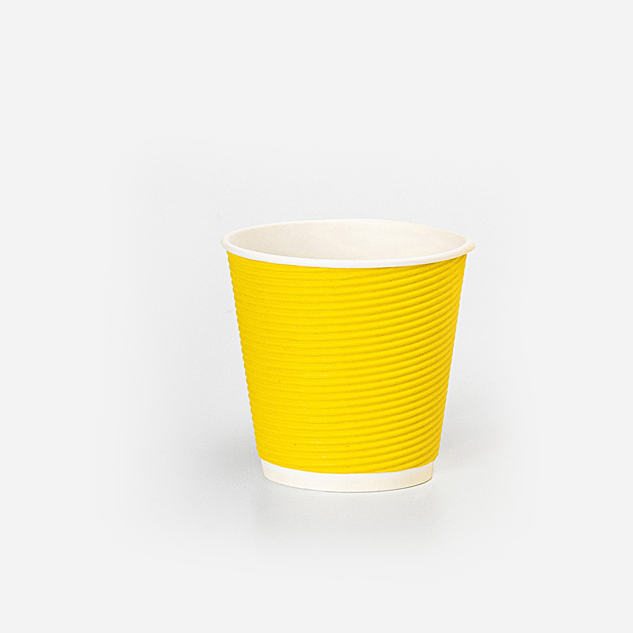 Шукаєте спосіб додати яскравих фарб у ваш бізнес? Жовтий гофрований стакан 110 мл — це не просто посуд, а справжній акцент, який привертає увагу та створює позитивний настрій. Цей компактний стаканчик ідеально підходить для кав'ярень, кафе, офісів та кейтерингу, де подають гарячий еспресо, рістрето або інші невеликі напої.