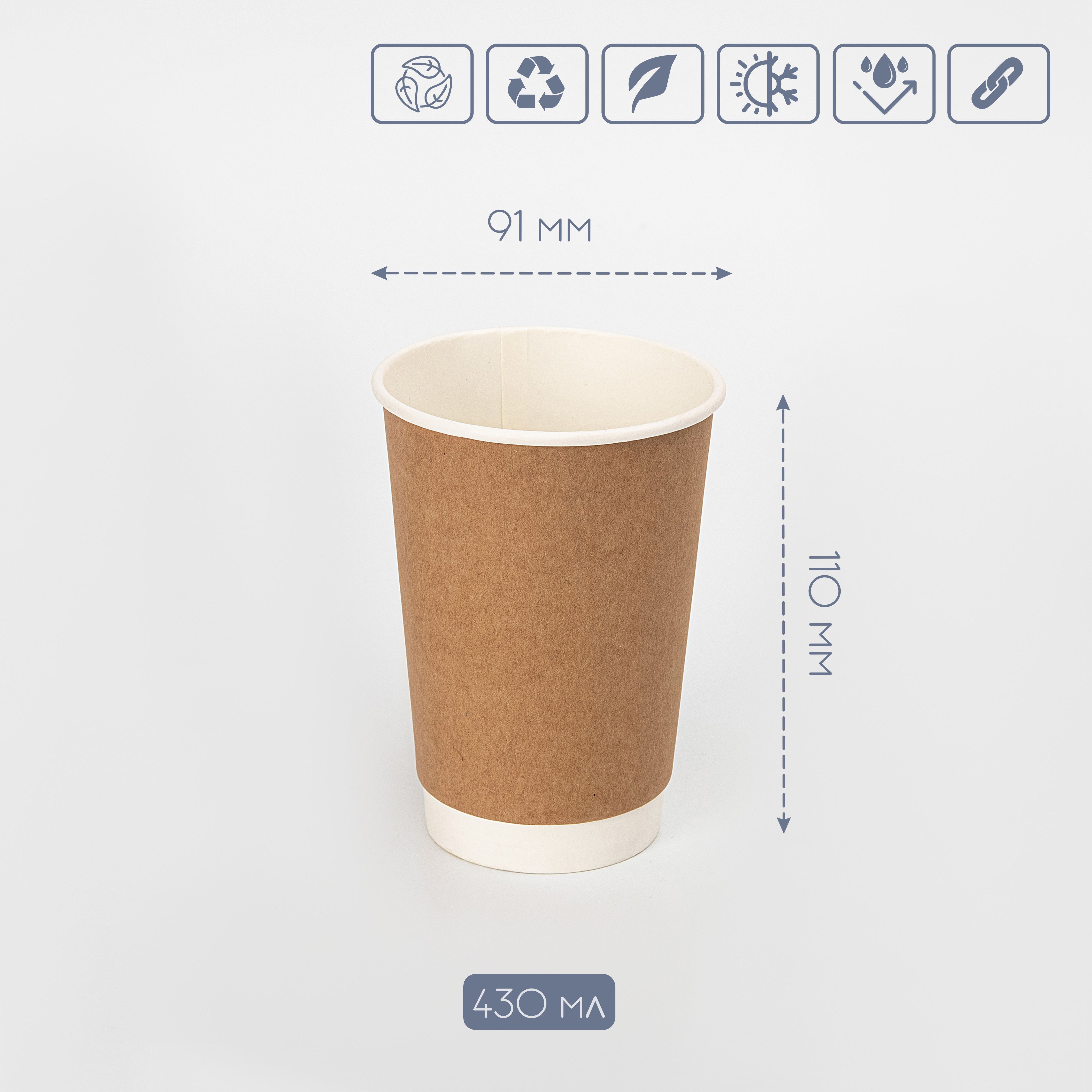 Стакан паперовий двошаровий 430 мл крафт, 20 шт/600ящ (D90)