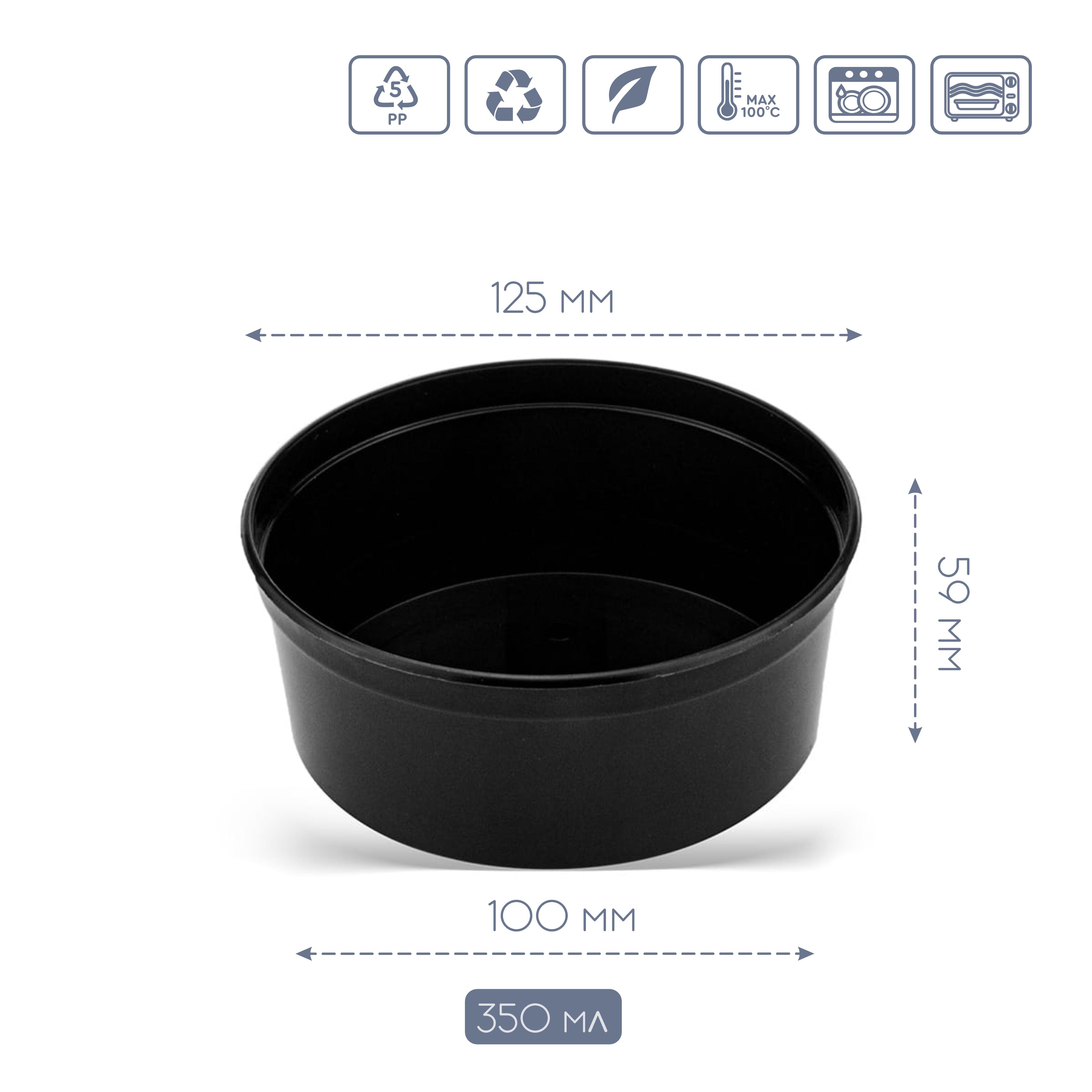 Супник РР чорний 350мл d125mm 50шт.уп./450шт. ящ. PL