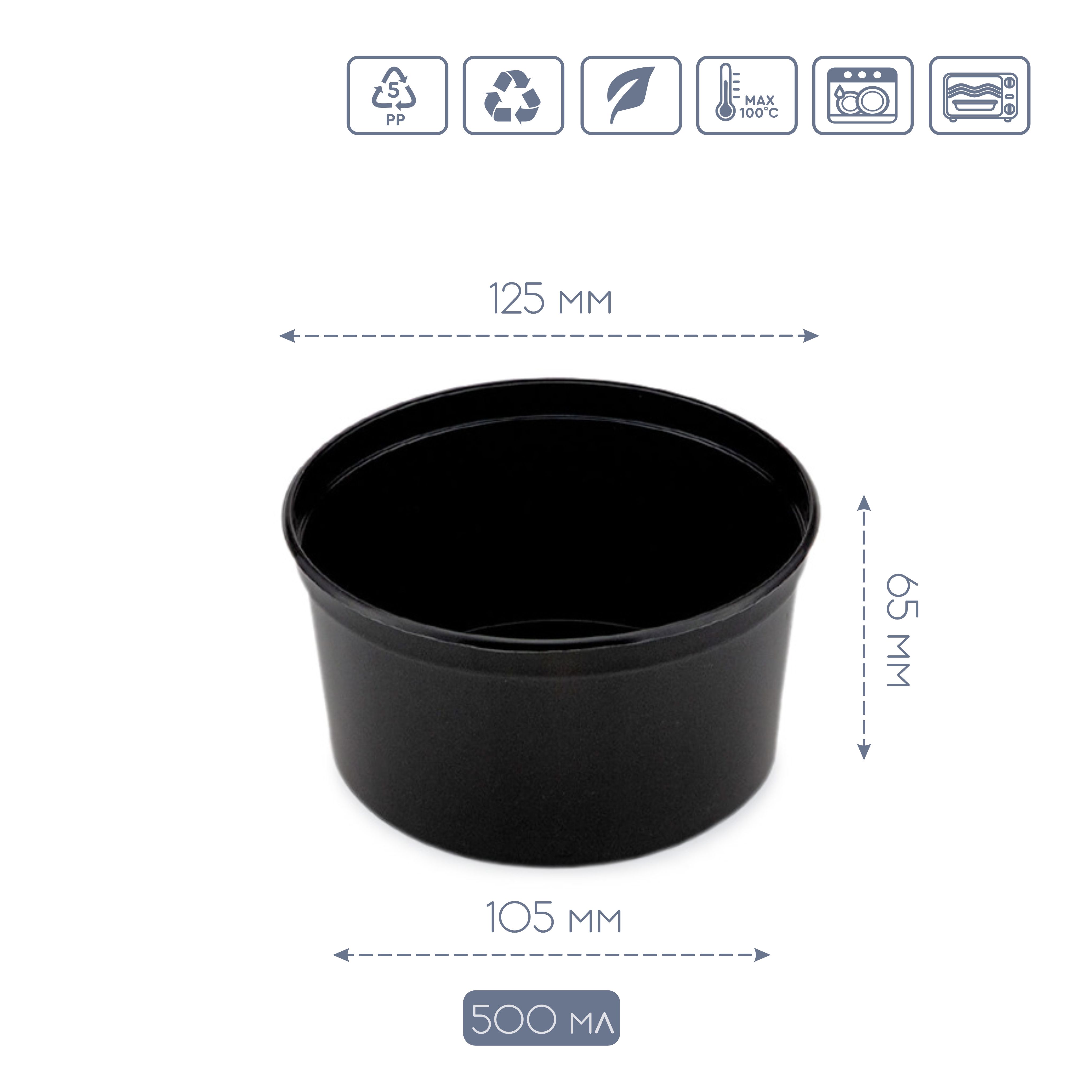 Супник РР чорний 500 мл d125 мм – зручний та практичний контейнер для гарячих і холодних страв.