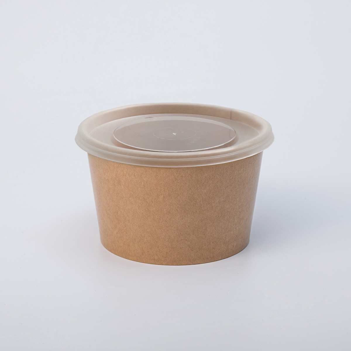 Крафтова супниця, на 100% складається з якісного целюлозного картону. Має матову поверхню і приємна на дотик. Усередині нанесена ламінація. Жиро і вологостійка. Виготовлена без клею, не має сторонніх запахів. Може бути використана в мікрохвильовій печі. Відмінно підійде для доставки невеликої порції супу, гарячої страви або упаковки десерту - морозива або мусу. Обєм- 250 мл. Розміри 96*76*60мм Розміри Коробки 26*48.5*40см Вага Коробки 5кг Мінімальне замовлення - 1уп. В упаковці 50шт, в ящику 500шт.