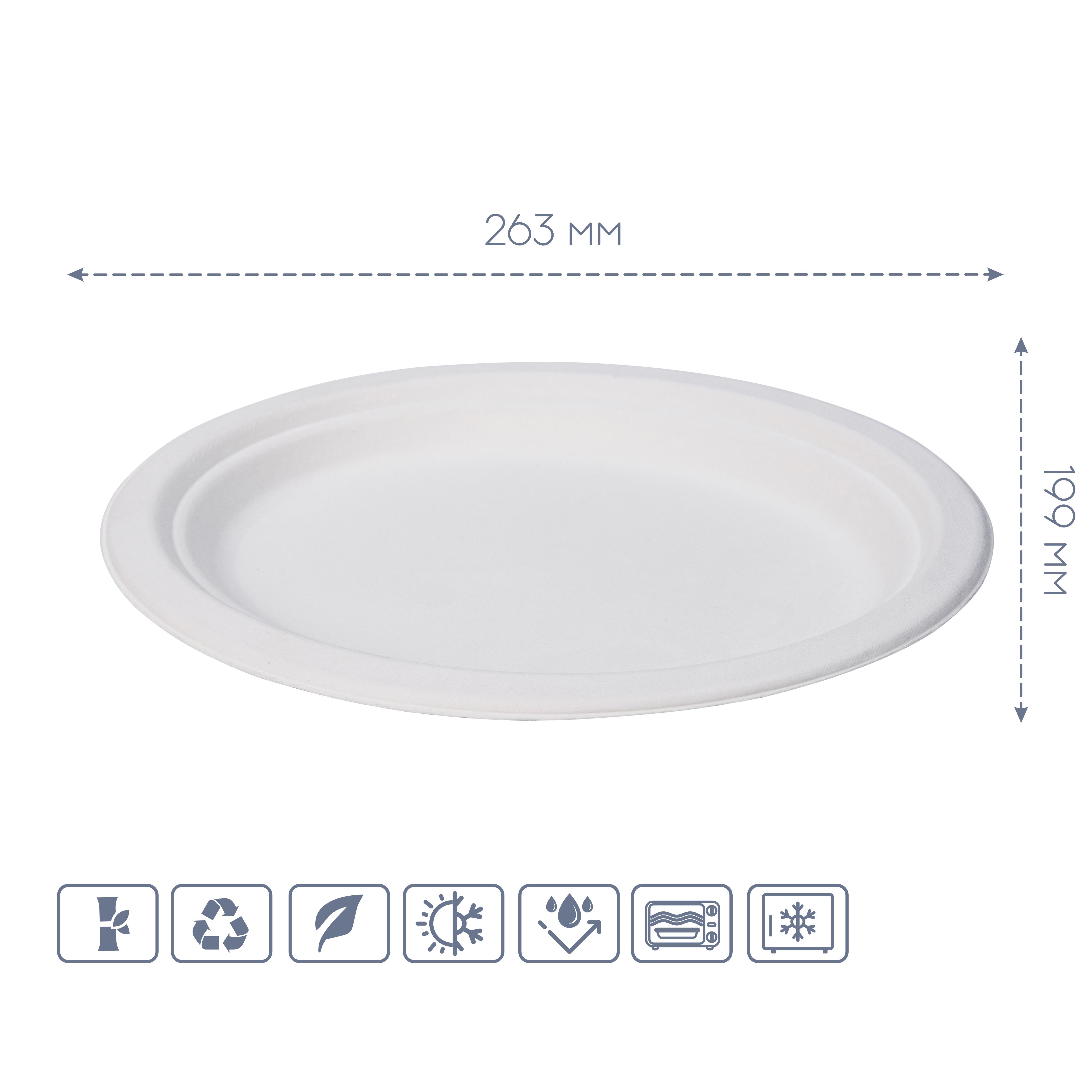 арілка з тростини овальна 263×199×20 мм – чудове рішення для ресторанів, кафе, кейтерингу та служб доставки їжі, які шукають стильну, екологічну та безпечну упаковку. Виготовлена з волокон цукрової тростини (багасса), що є повністю біорозкладним матеріалом, стійким до вологи і жиру.