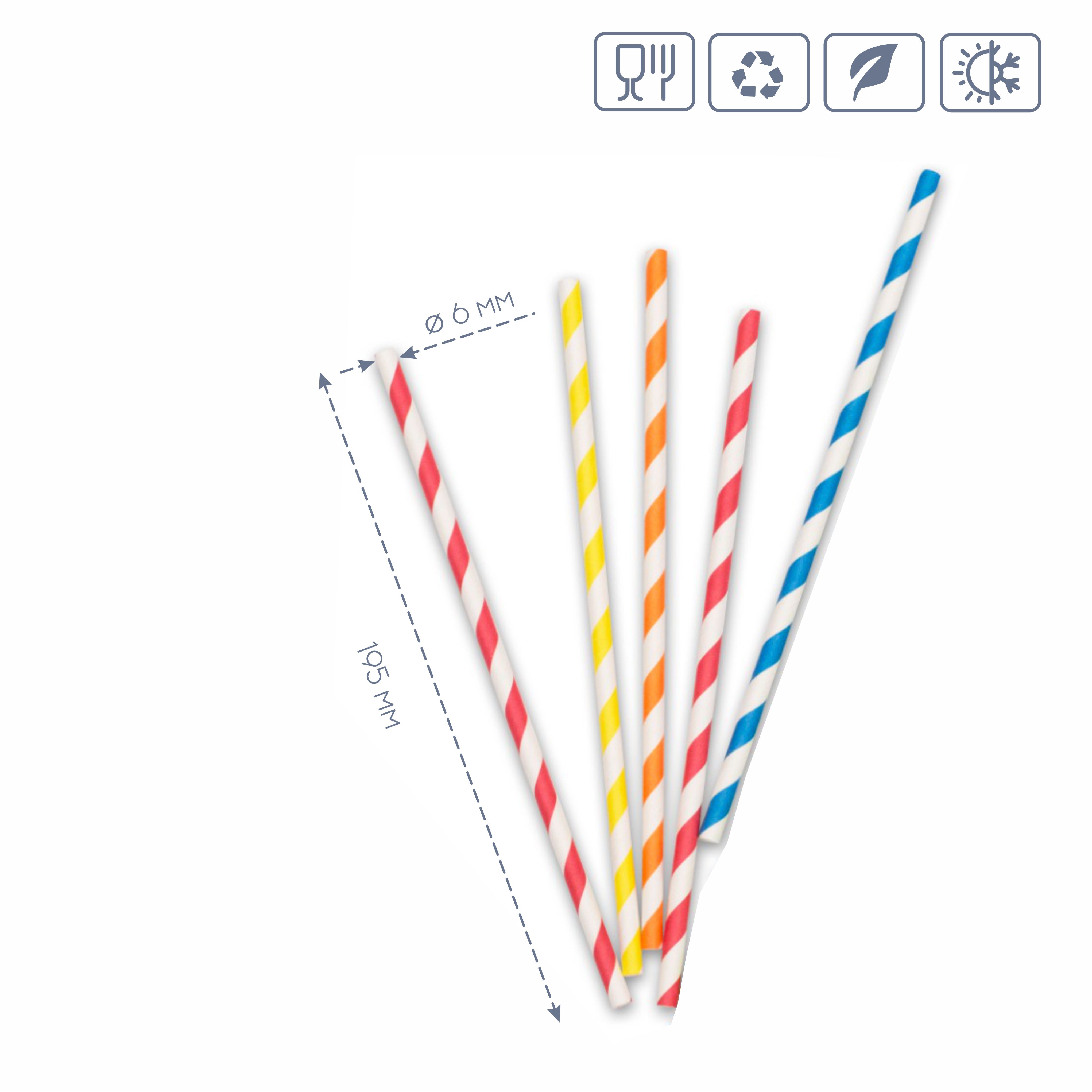 Трубочка паперова кольорова страйп d6*195мм 100шт/уп (5000шт/ящ)